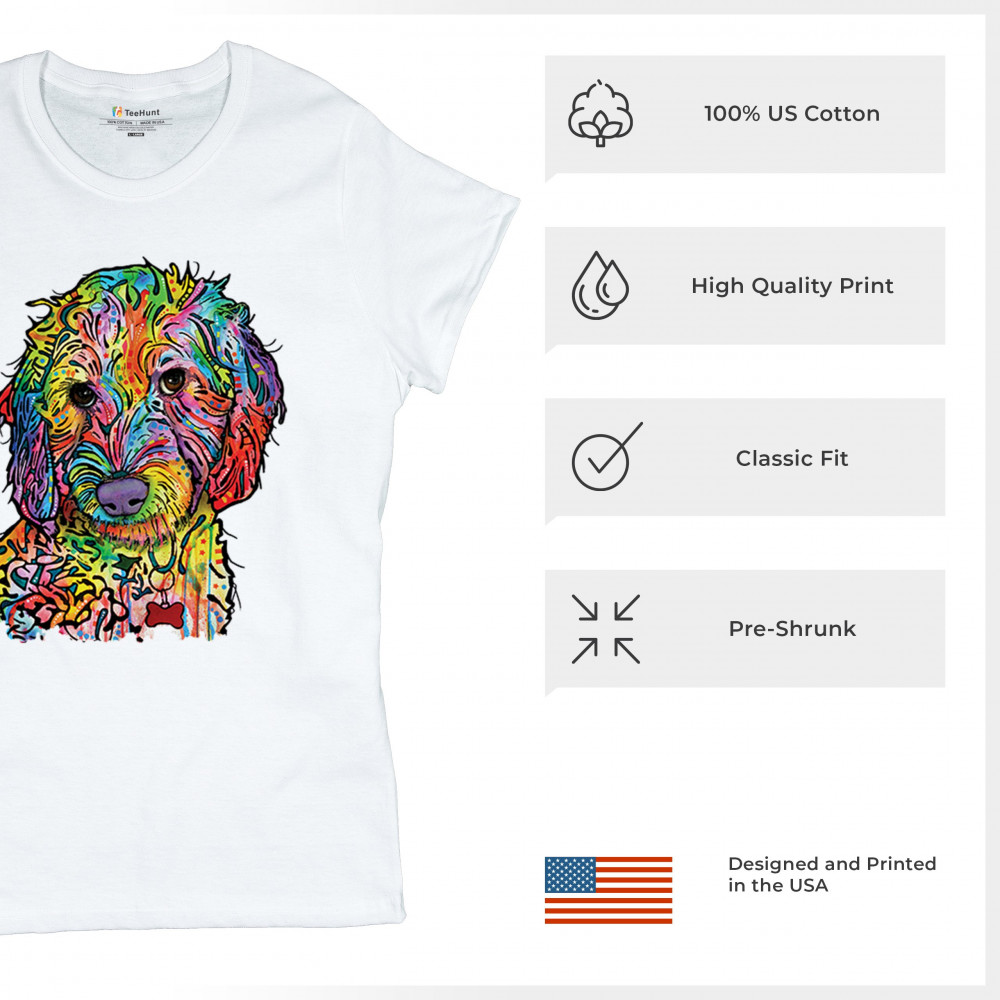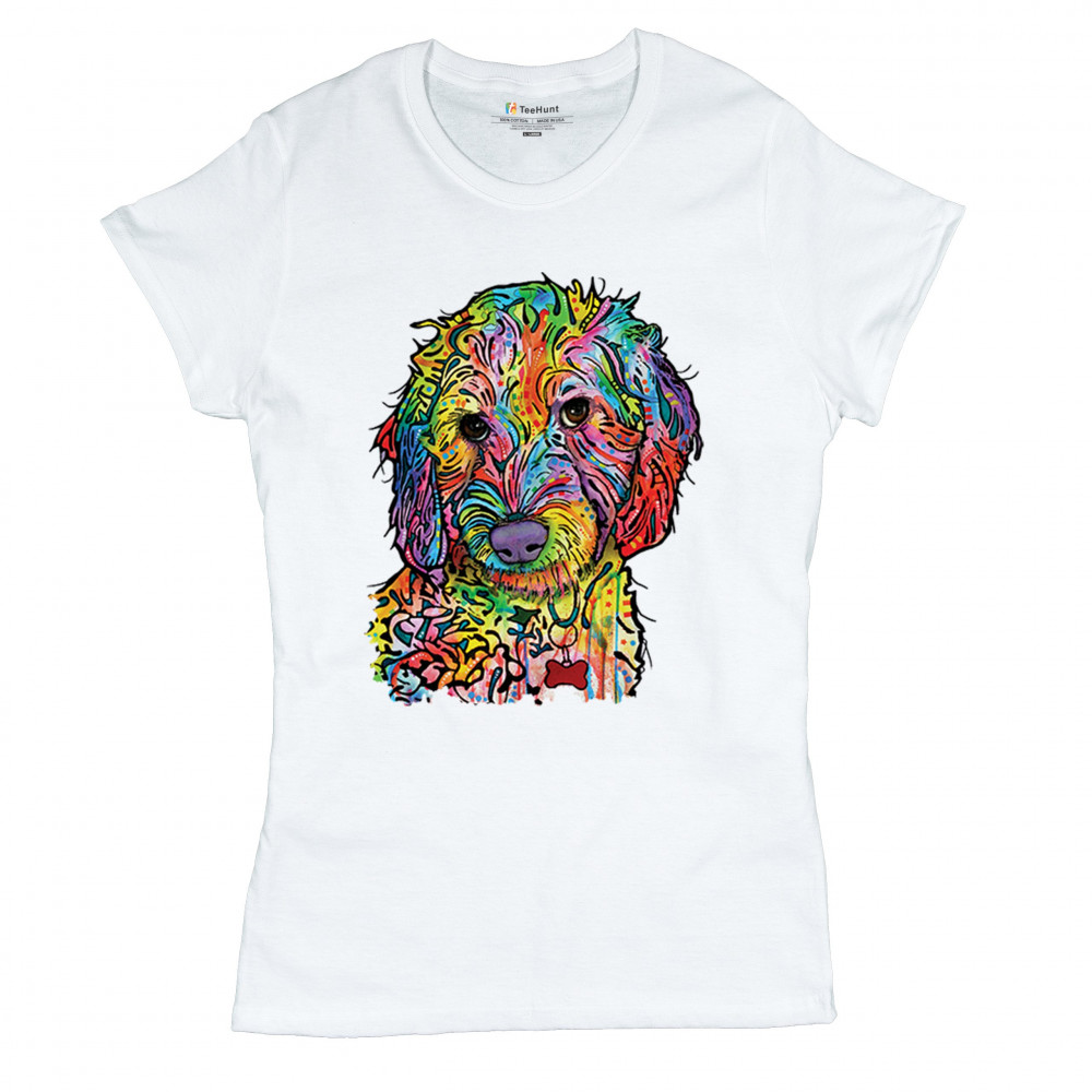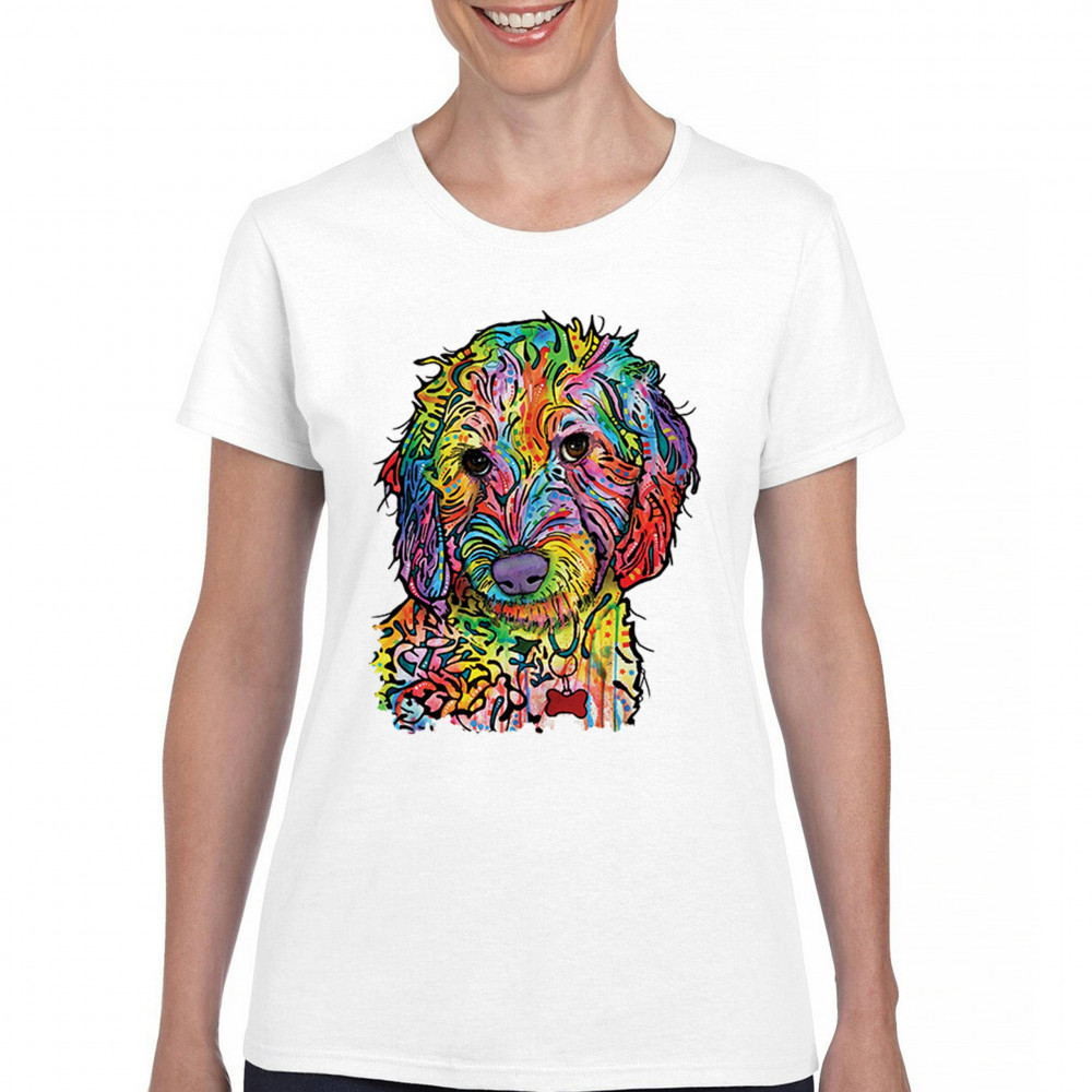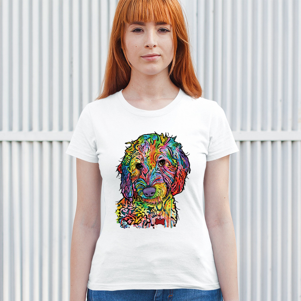 DEAN RUSSO SWEET POODLE t-shirt dog pattern puppy adopt pet women's tee white