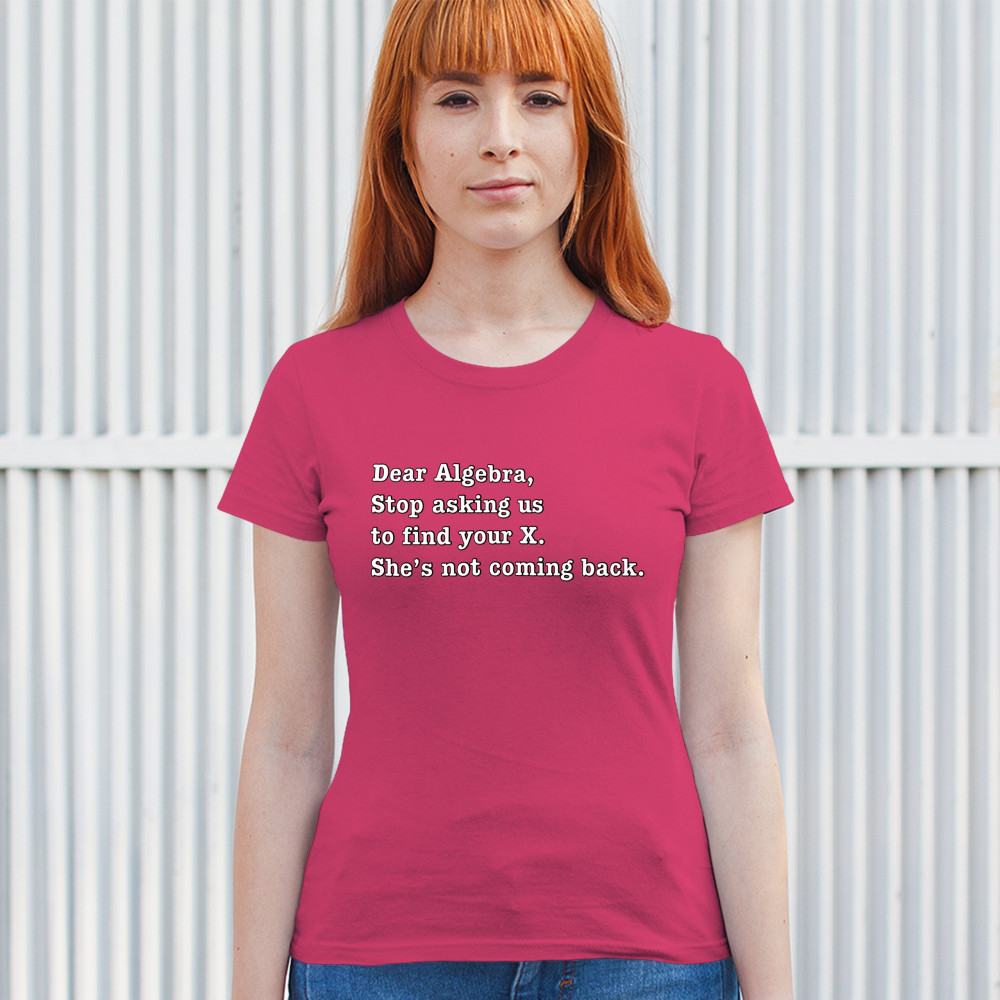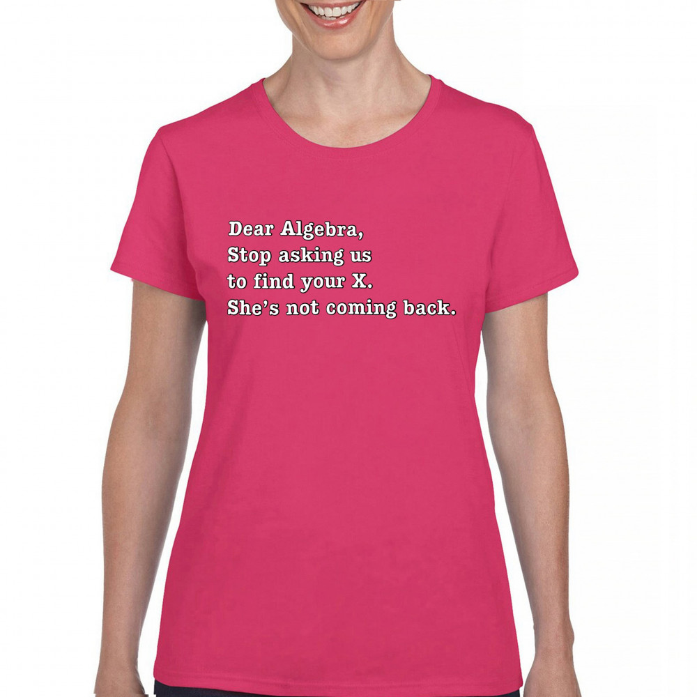 DEAR ALGEBRA STOP ASKING US TO FIND YOUR X t-shirt funny humor women's tee pink