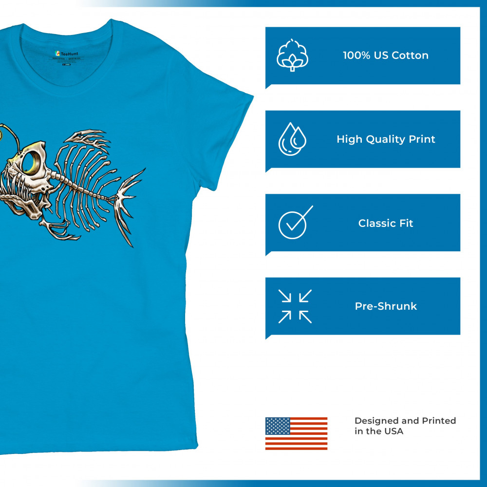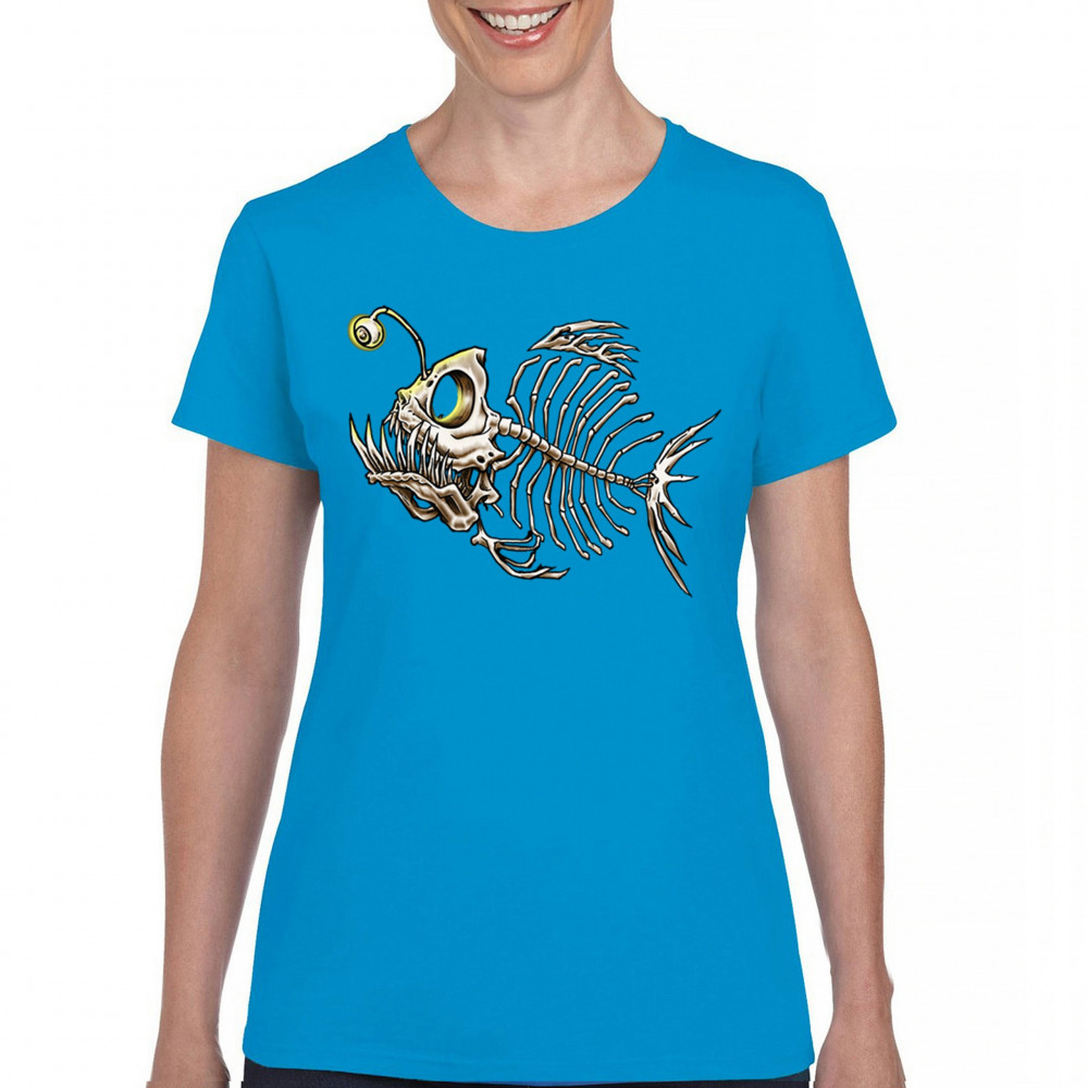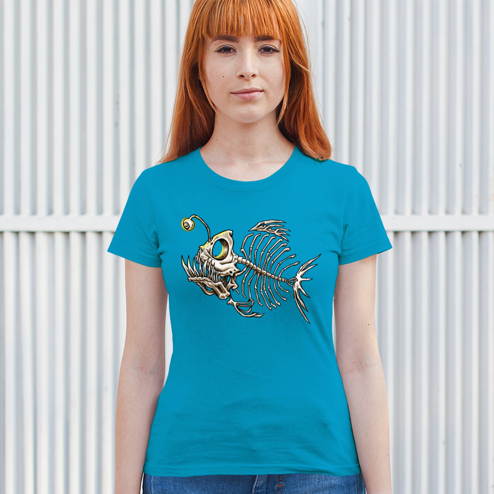 This highly detailed angler fish skeleton design features sharp bones, glowing lure eye, and deep sea terror aesthetic. Perfect for horror fans, marine biology lovers, and ocean adventurers, it combines underwater predator vibes with bone art flair. A great fit for Halloween, dive clubs, and dark sea aesthetics.
