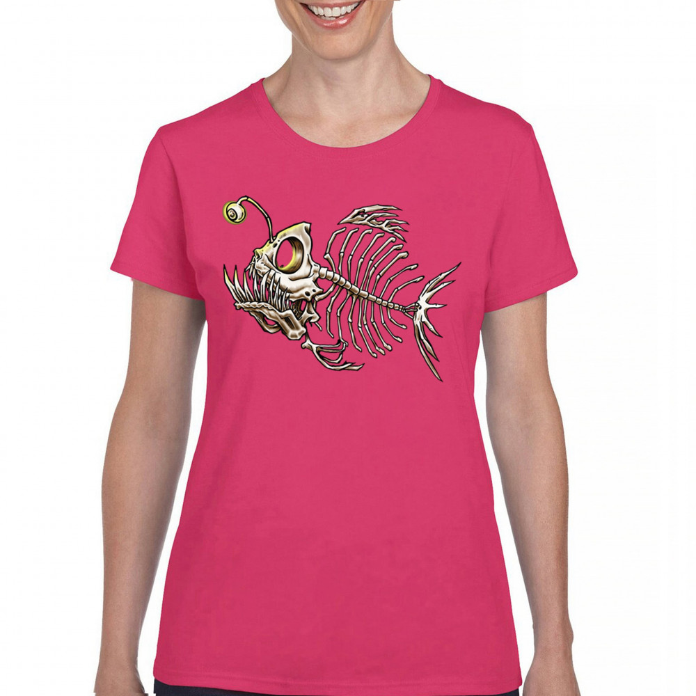 Creepy angler fish skeleton with glowing eye and horror bones. Perfect for sea lovers, divers, Halloween, and marine biology fans.