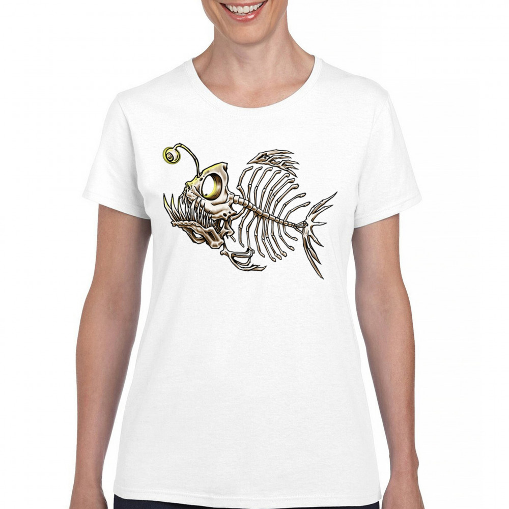 Creepy angler fish skeleton with glowing eye and horror bones. Perfect for sea lovers, divers, Halloween, and marine biology fans.
