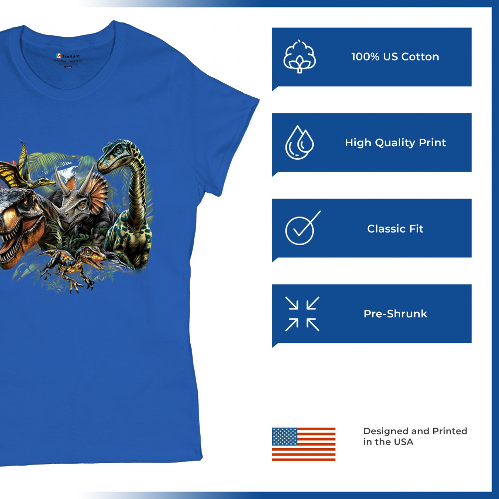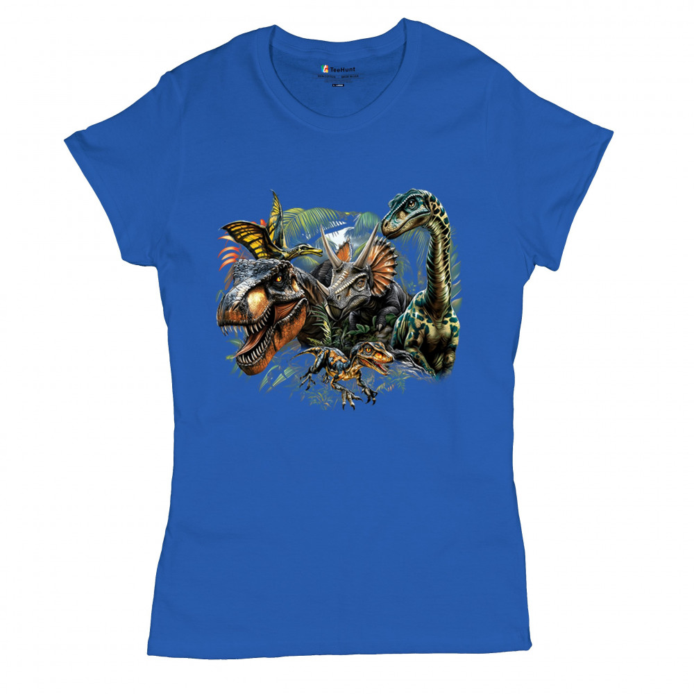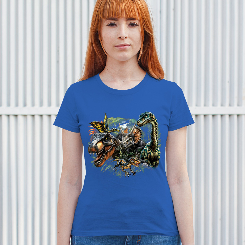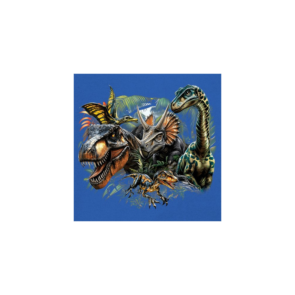 Get prehistoric with this electrifying design featuring a full dino squad in vibrant jungle detail. Includes t rex, triceratops, raptor, brachiosaurus, and pteranodon, all surrounded by tropical foliage. A perfect pick for dinosaur fans, fossil hunters, Jurassic birthday parties, or anyone who loves bold, wild, nature-themed art.