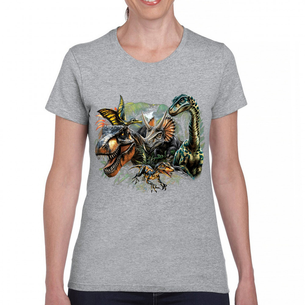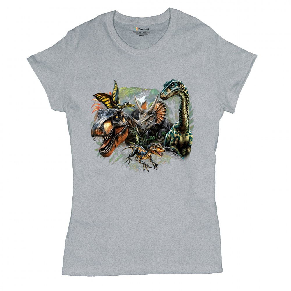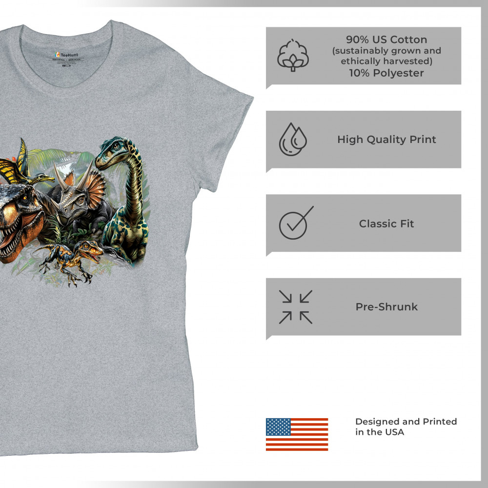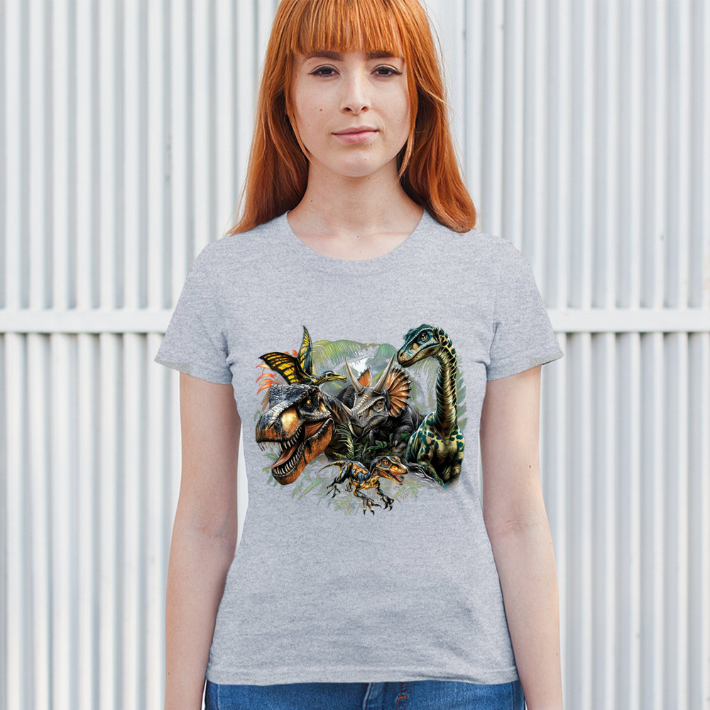 Get prehistoric with this electrifying design featuring a full dino squad in vibrant jungle detail. Includes t rex, triceratops, raptor, brachiosaurus, and pteranodon, all surrounded by tropical foliage. A perfect pick for dinosaur fans, fossil hunters, Jurassic birthday parties, or anyone who loves bold, wild, nature-themed art.