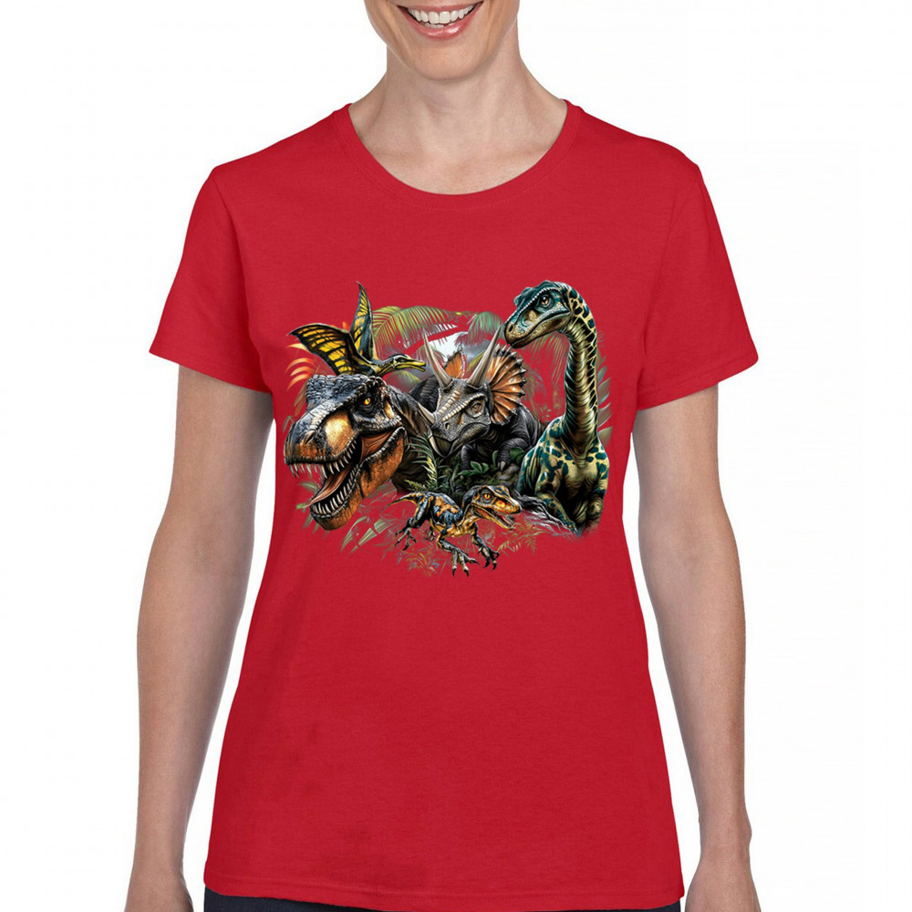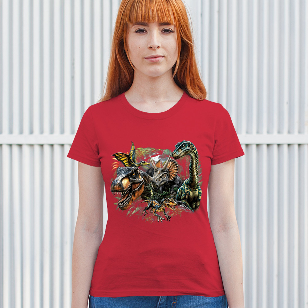 Get prehistoric with this electrifying design featuring a full dino squad in vibrant jungle detail. Includes t rex, triceratops, raptor, brachiosaurus, and pteranodon, all surrounded by tropical foliage. A perfect pick for dinosaur fans, fossil hunters, Jurassic birthday parties, or anyone who loves bold, wild, nature-themed art.