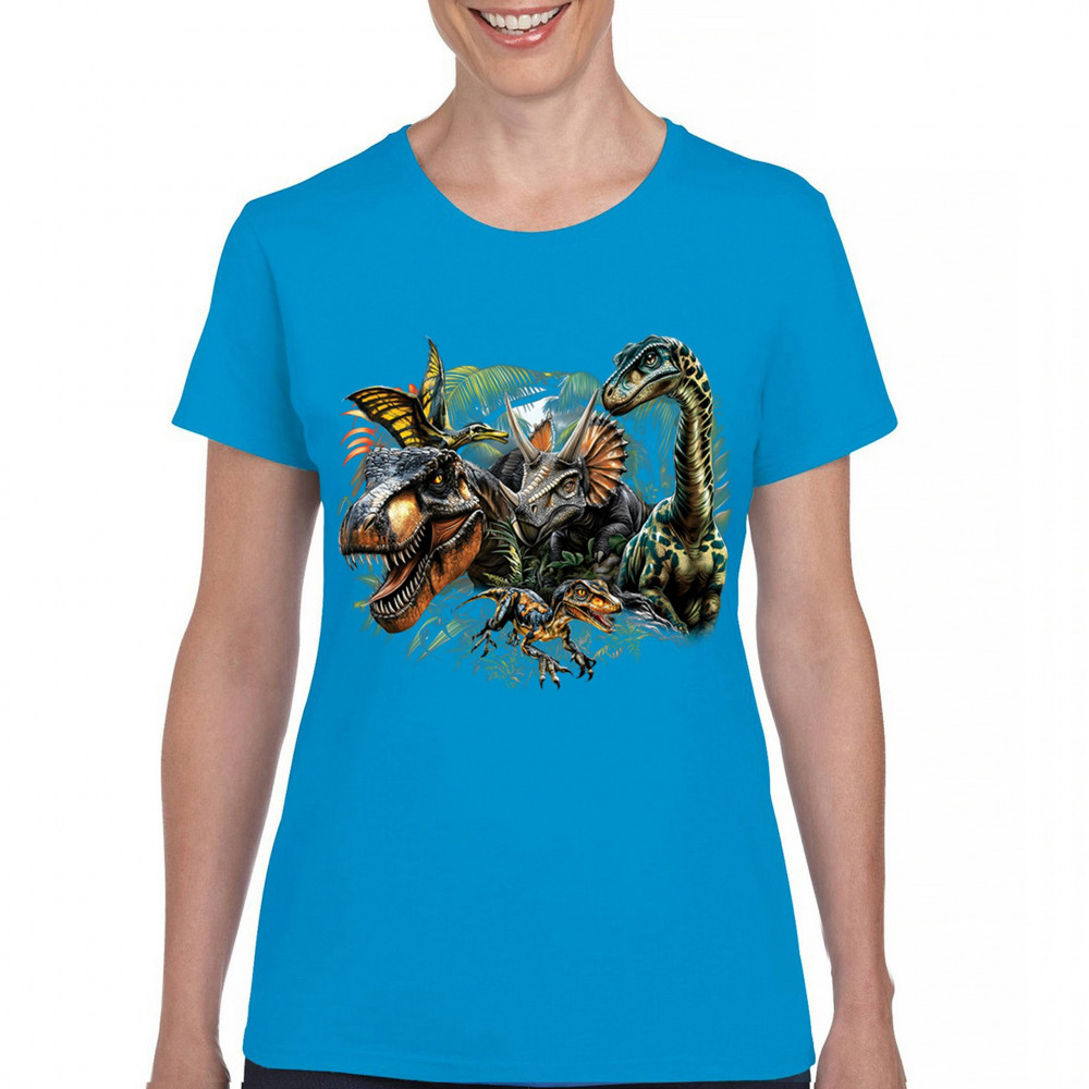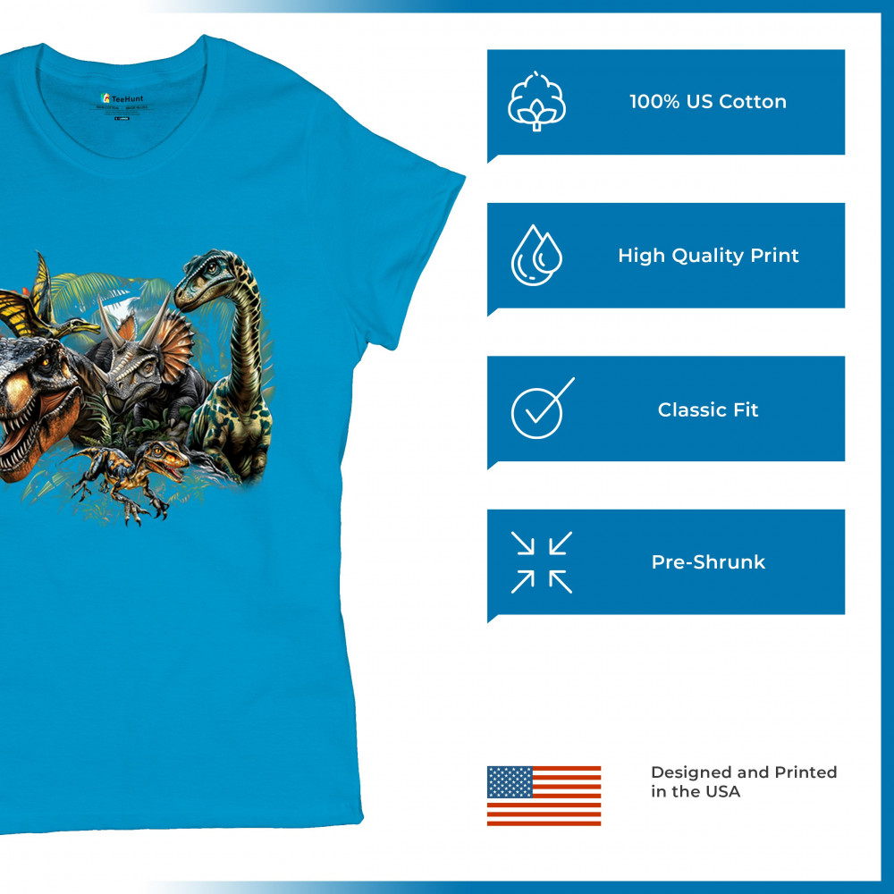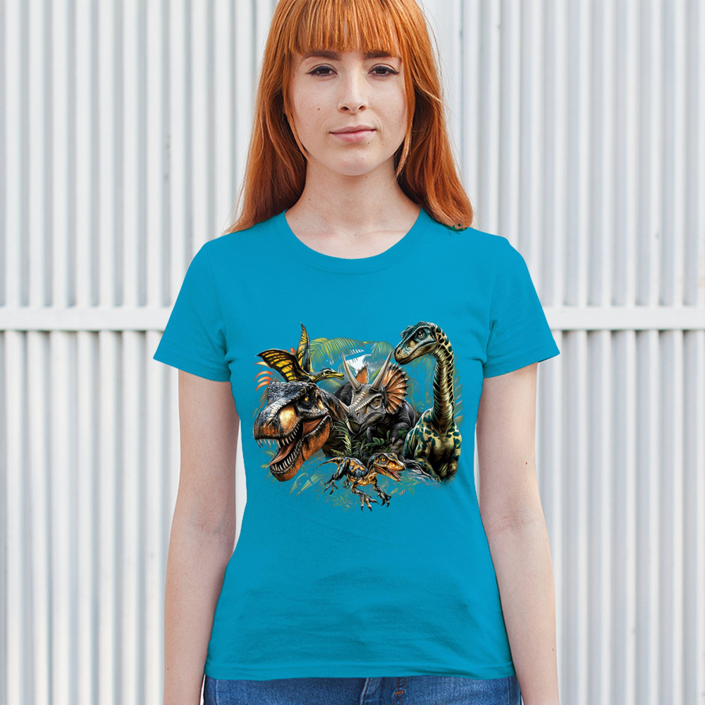 Get prehistoric with this electrifying design featuring a full dino squad in vibrant jungle detail. Includes t rex, triceratops, raptor, brachiosaurus, and pteranodon, all surrounded by tropical foliage. A perfect pick for dinosaur fans, fossil hunters, Jurassic birthday parties, or anyone who loves bold, wild, nature-themed art.