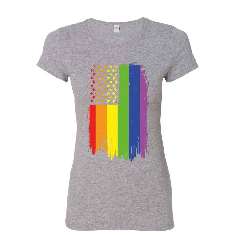 DISTRESSED GAY PRIDE RAINBOW FLAG cotton t-shirt lgbtq love wins gray