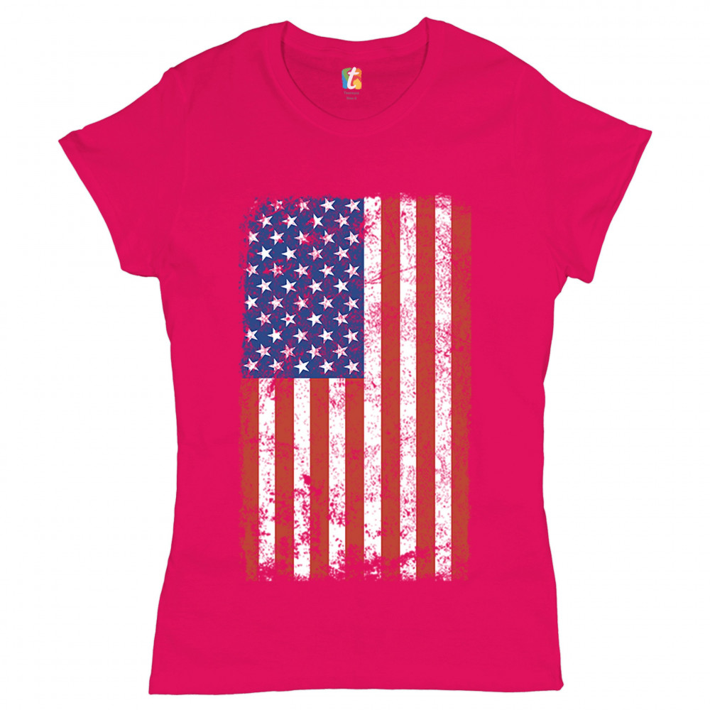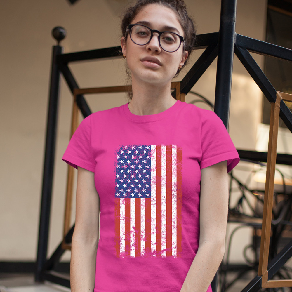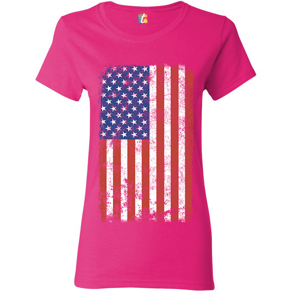 DISTRESSED GRUNGE AMERICAN FLAG t-shirt vintage 4th of july usa women's tee pink