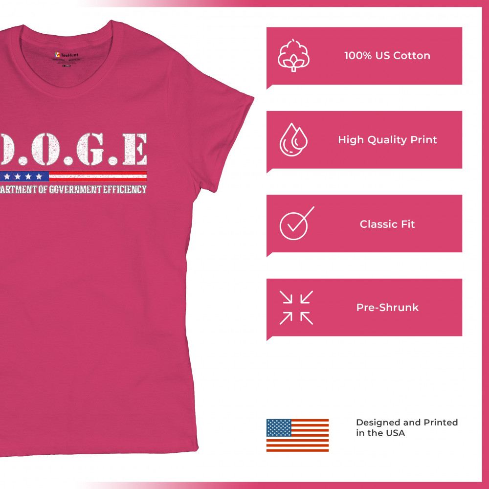 The D.O.G.E. – Department of Government Efficiency design brings gritty patriotism and satire together in a bold statement. With distressed typography, red, white, and blue stars and stripes, and a message that resonates with liberty lovers, it's ideal for conservatives, libertarians, and reform advocates at political events, rallies, or everyday wear.