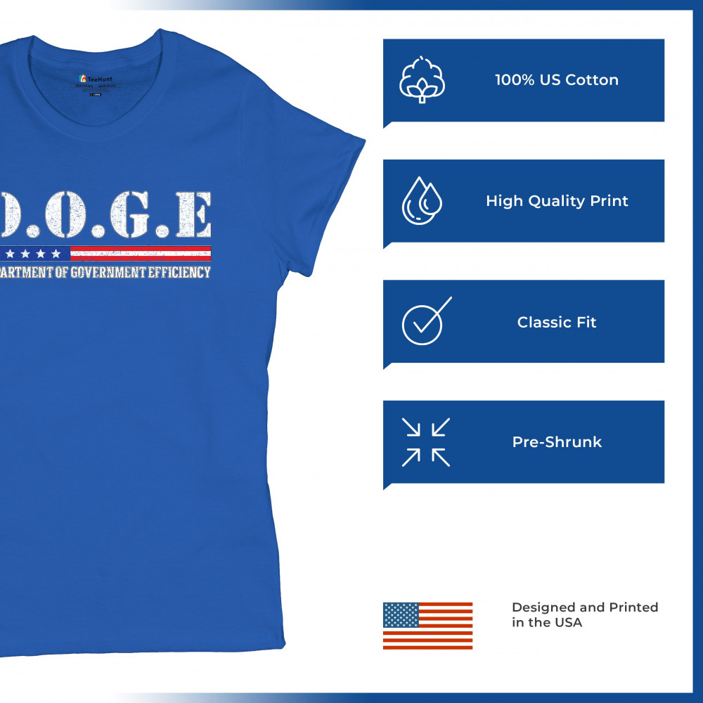 The D.O.G.E. – Department of Government Efficiency design brings gritty patriotism and satire together in a bold statement. With distressed typography, red, white, and blue stars and stripes, and a message that resonates with liberty lovers, it's ideal for conservatives, libertarians, and reform advocates at political events, rallies, or everyday wear.