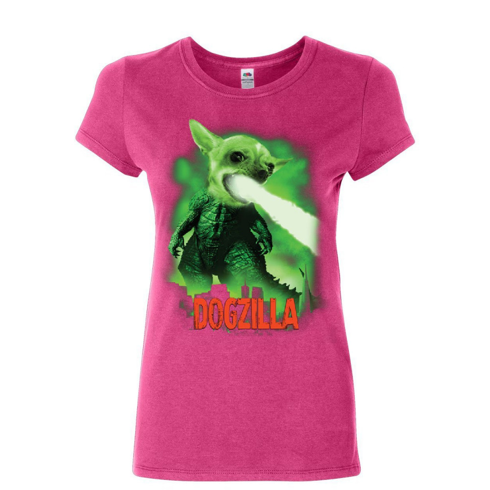 DOGZILLA FUNNY women's t-shirt movie parody dog pet lovers atomic breath shirt pink