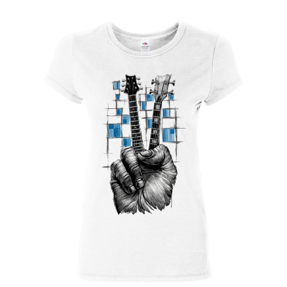 DON'T FRET GUITAR women's t-shirt rock & roll musician peace sign music shirt white