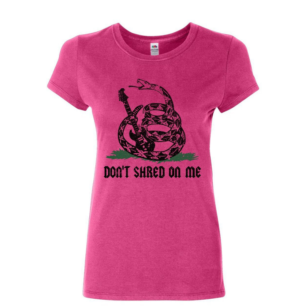 DON'T SHRED ON ME women's t-shirt gadsden flag snake guitar rock music shirt pink