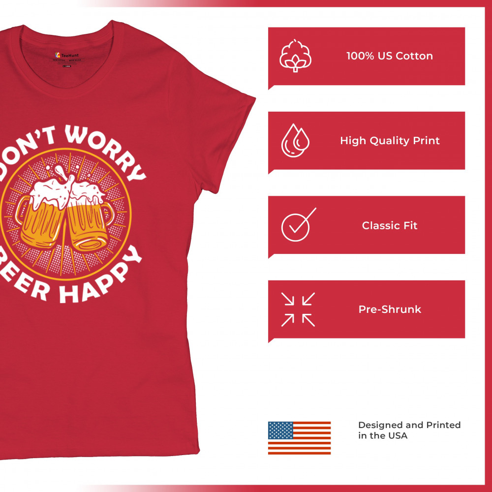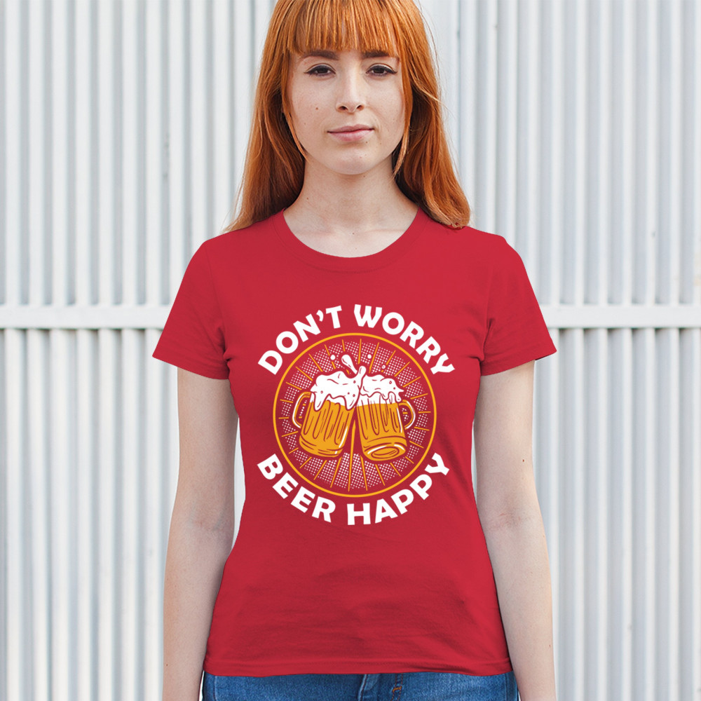 Spread joy with the "Don't Worry, Beer Happy" design, perfect for beer lovers. Ideal for casual outings and social gatherings.