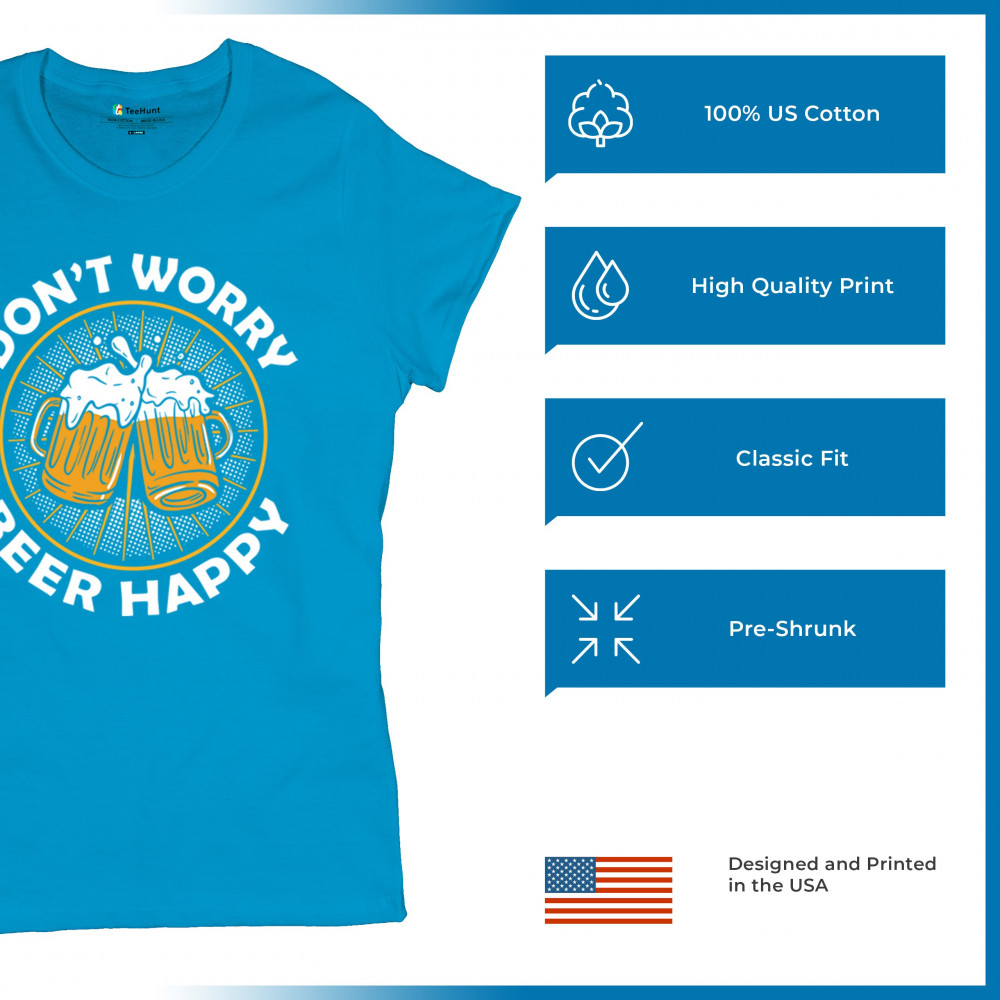 Spread joy with the "Don't Worry, Beer Happy" design, perfect for beer lovers. Ideal for casual outings and social gatherings.