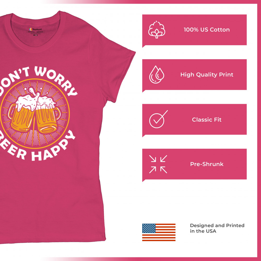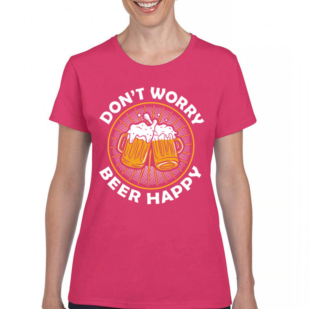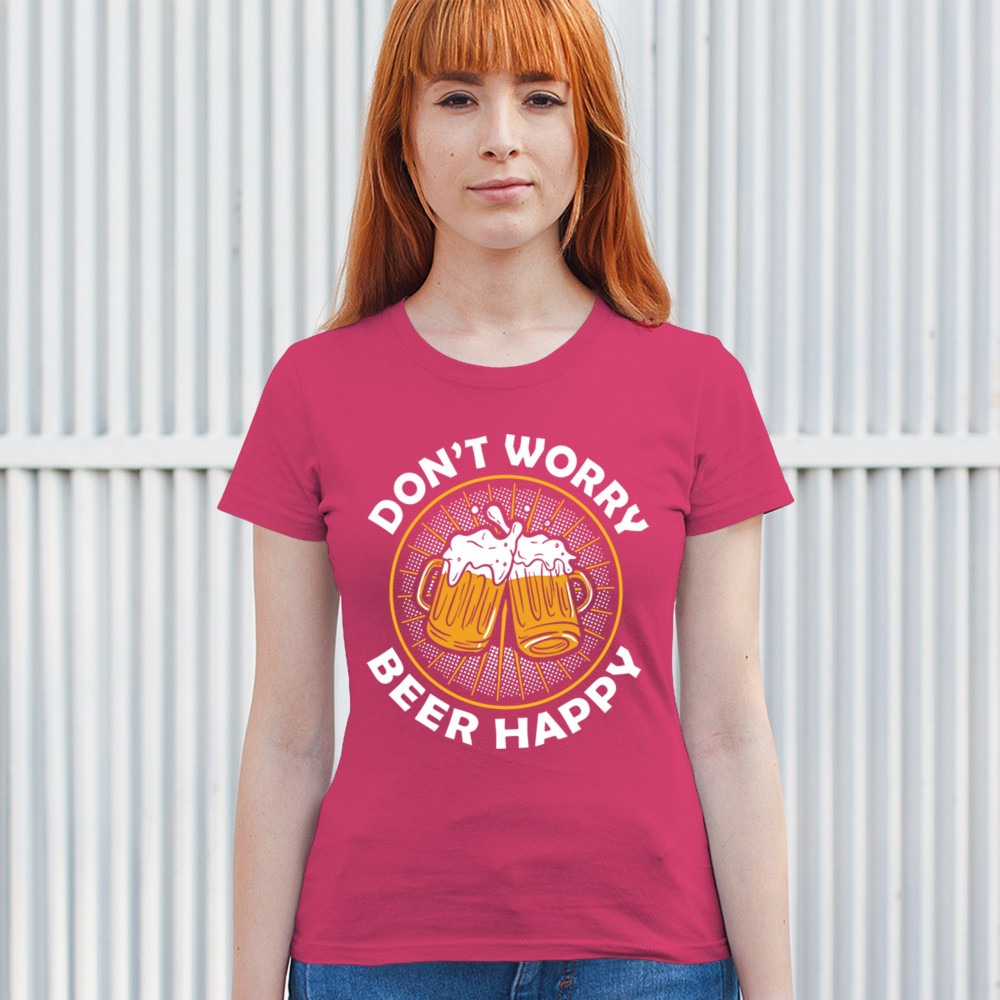 Spread joy with the "Don't Worry, Beer Happy" design, perfect for beer lovers. Ideal for casual outings and social gatherings.