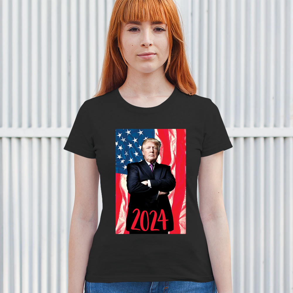 Stand proud with our Donald Trump 2024 design, a bold statement for America's future. Perfect for patriots and conservatives who champion victory, trust, and unity. Join the movement.