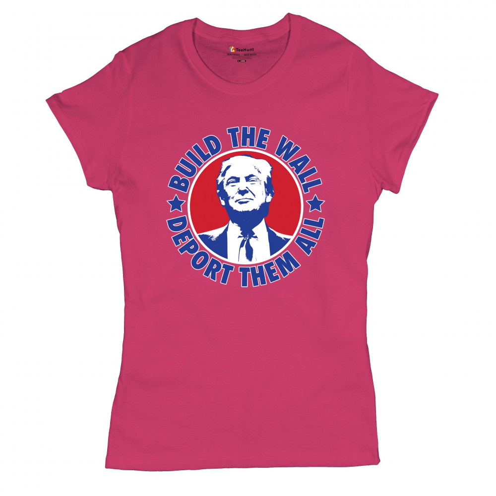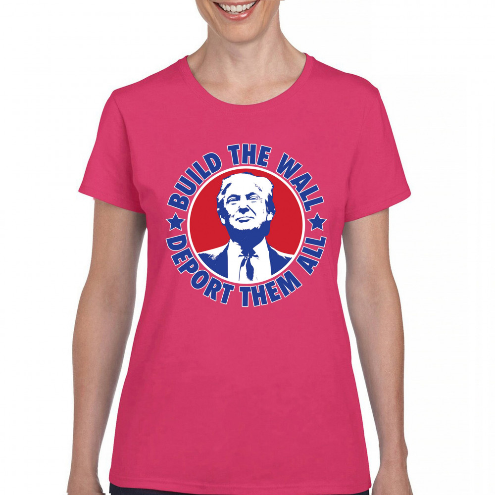 Showcase your unwavering support with a bold design that champions America first. Featuring the "Build the Wall Deport Them All Trump 2024" message, this piece is a must-have for conservatives, symbolizing trust in God over government, and a commitment to never surrender. Adorned with the American flag and a call to rebelution, it's perfect for any Trump supporter ready to stand against the tide.