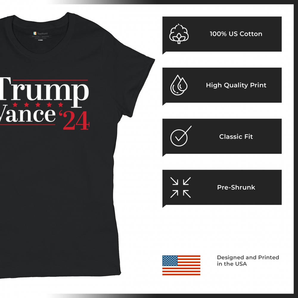 DONALD TRUMP JD VANCE 24 t-shirt make america great again 2024 maga women's tee black