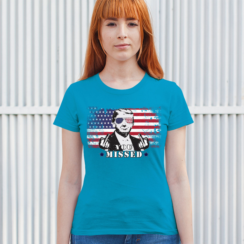 Embrace the spirit of patriotism and resilience with this powerful design showcasing Donald Trump in bold American flag sunglasses. Ideal for Trump rallies, political gatherings, and other patriotic events, this graphic is perfect for conservatives and Republicans alike. Show your unwavering support for Trump and the belief in making America great again. This striking design is not only a great addition to your wardrobe but also an excellent gift for fellow supporters. Wear it with pride and join the movement today.