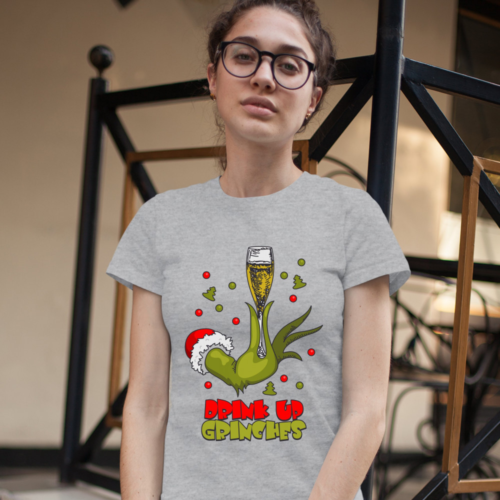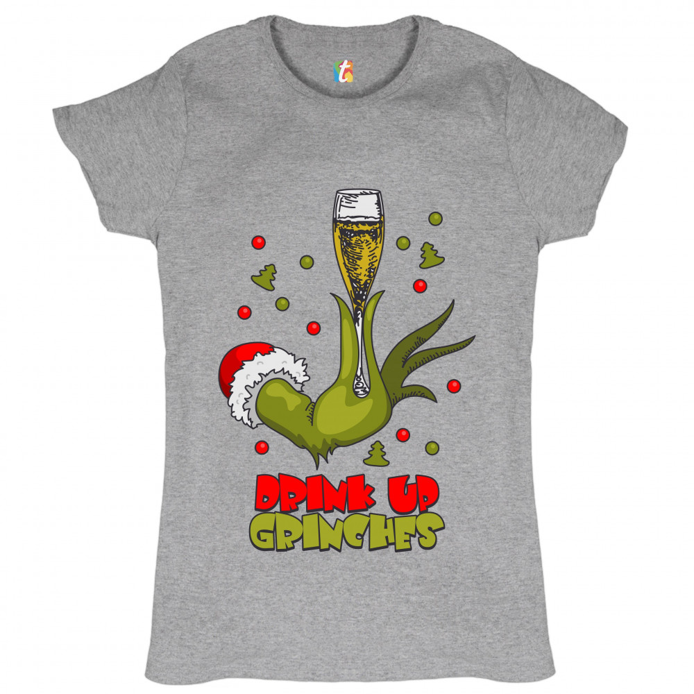DRINK UP GRINCHES t-shirt funny christmas drinking women's tee gray