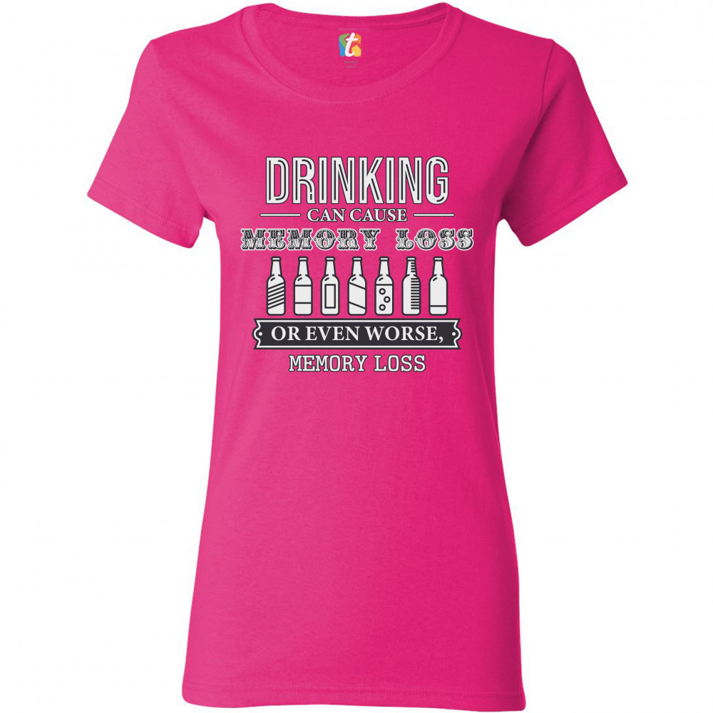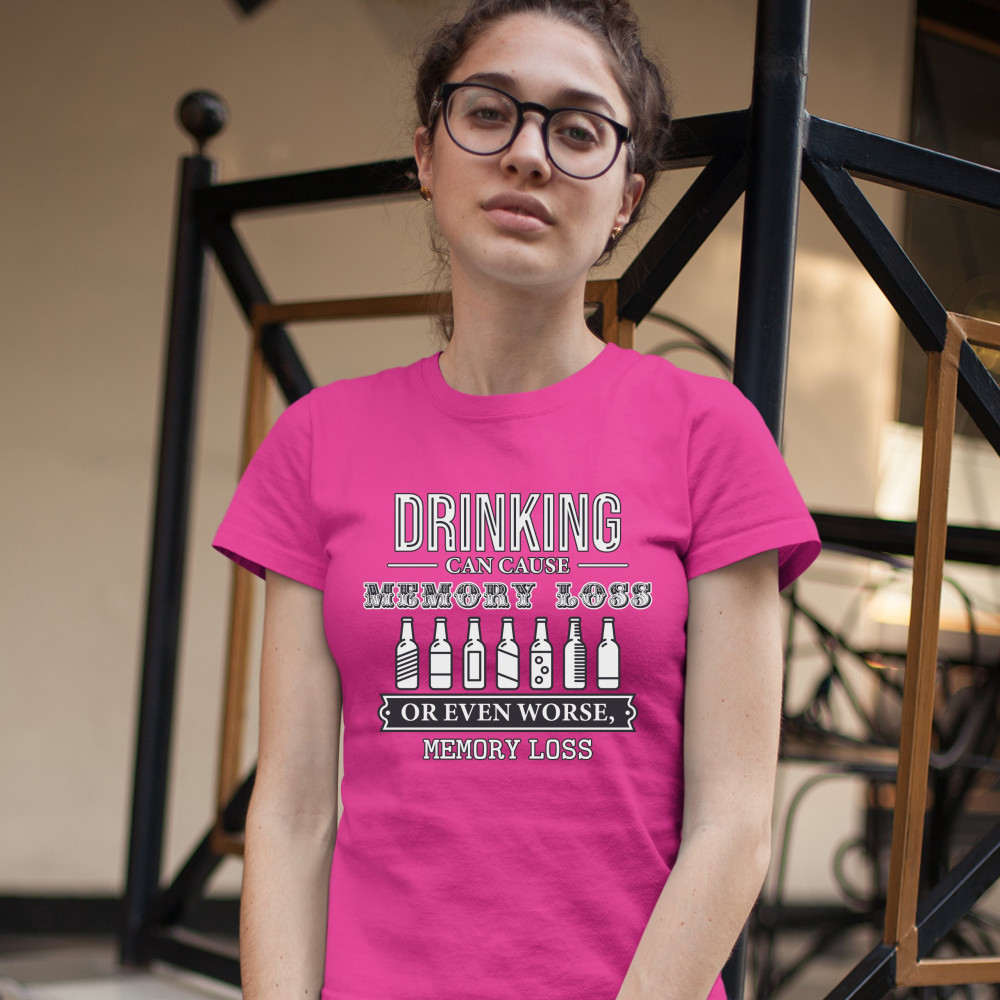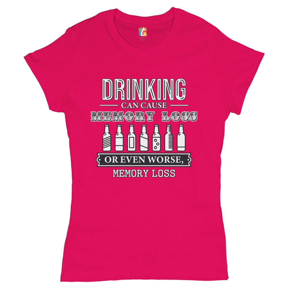 DRINKING CAN CAUSE MEMORY LOSS t-shirt alcohol beer inappropriate women's tee pink