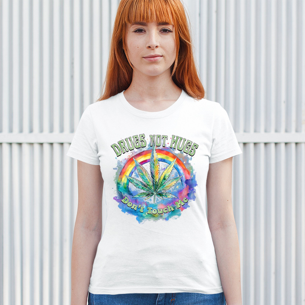 This bold marijuana leaf design blends psychedelic colors with a rainbow flair to create a loud, colorful statement. Great for weed lovers who value space, it's the perfect look for expressing antisocial vibes. Whether you're at festivals, smokeouts, or chilling solo, this cannabis design mixes humor, independence, and stoner culture with unapologetic style.
