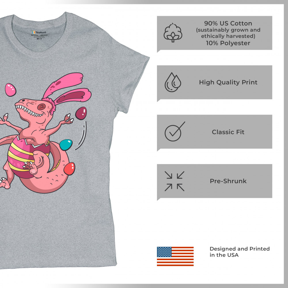 EASTER EGG T-REX t-shirt happy easter bunny dinosaur egg hunt women's tee gray