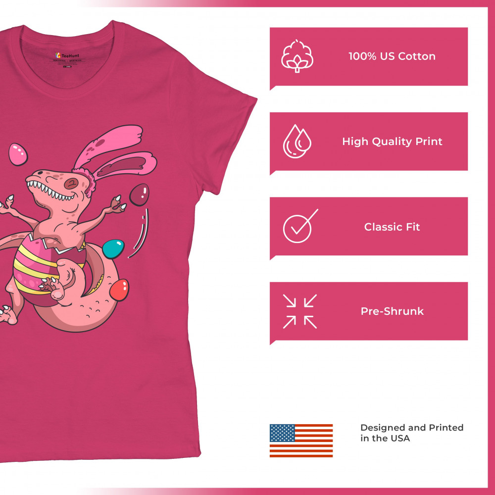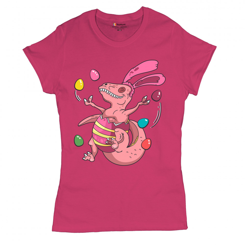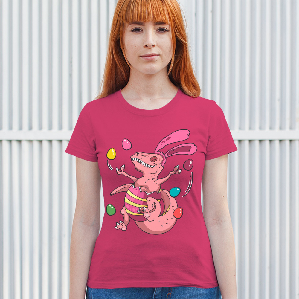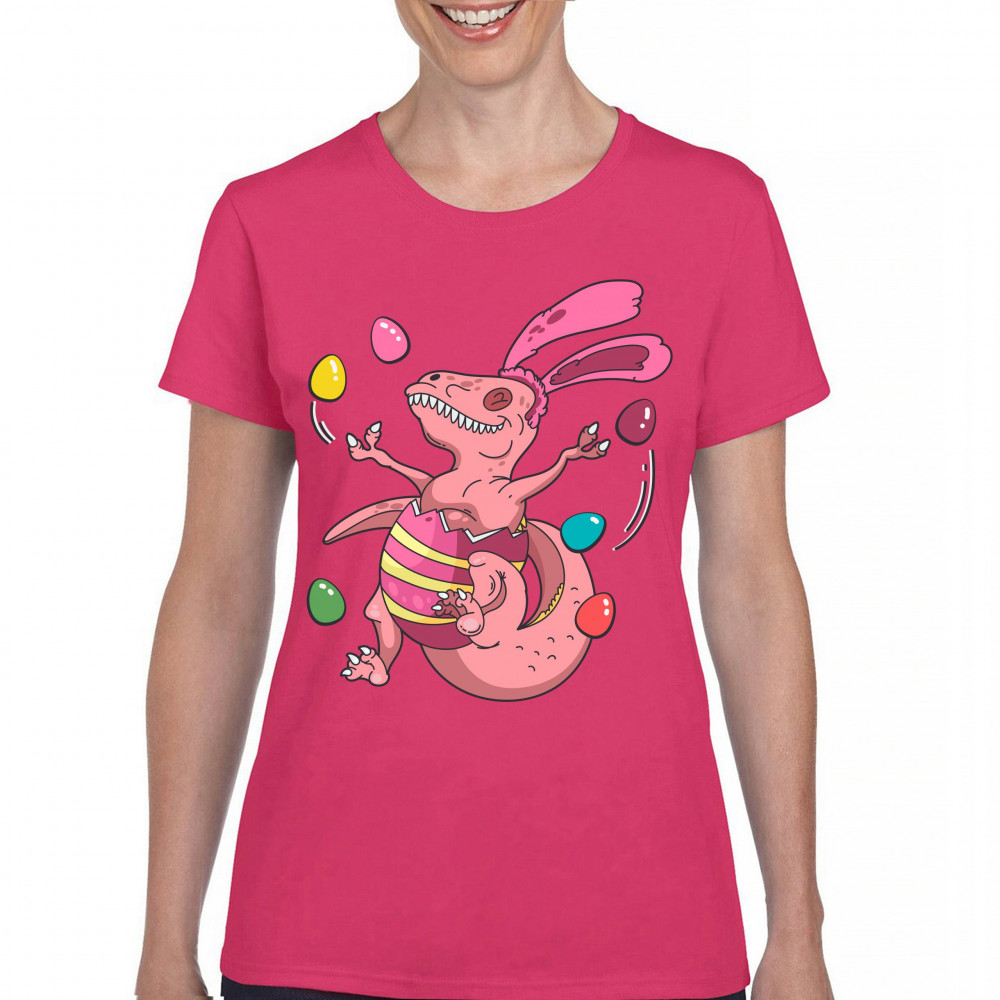 EASTER EGG T-REX t-shirt happy easter bunny dinosaur egg hunt women's tee pink