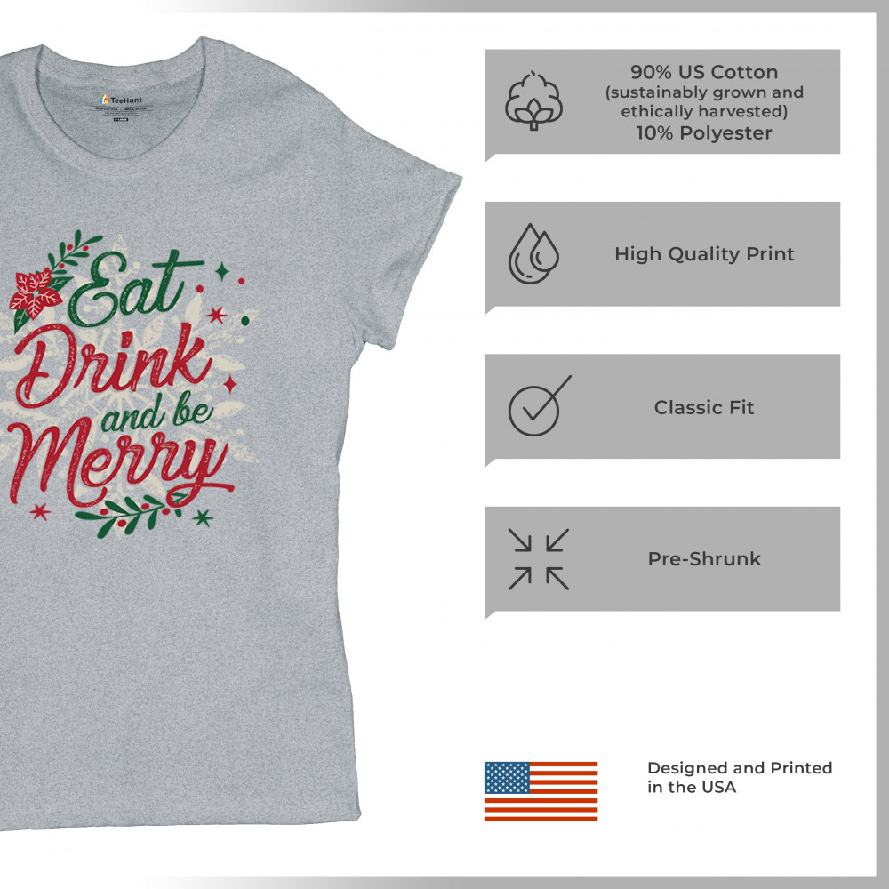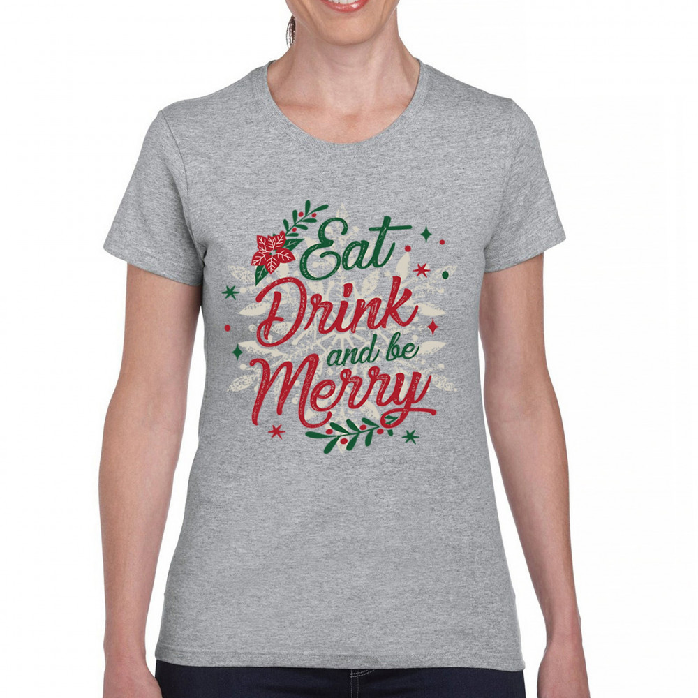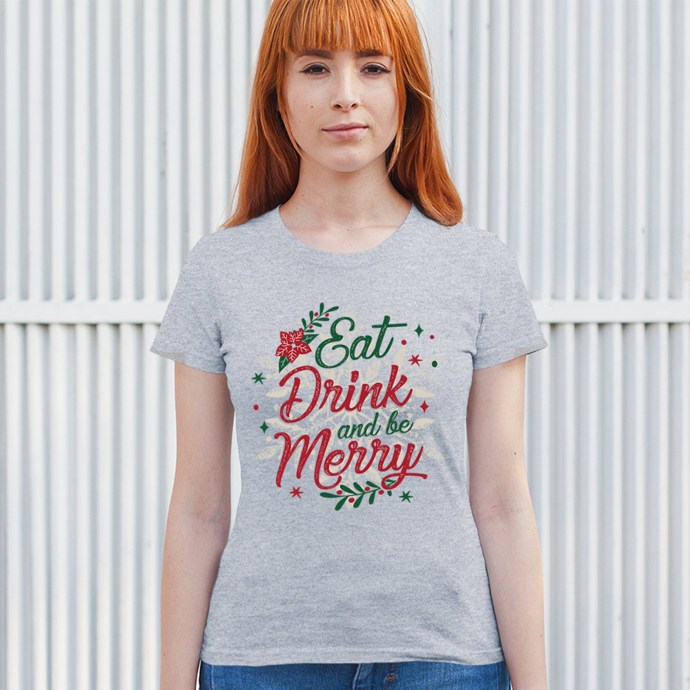 Bring the joy of the season with this "Eat, Drink, and Be Merry" design, crafted to make every holiday gathering a bit brighter. Ideal for cozy holiday mornings, family gatherings, Secret Santa gifts, or festive office parties, this piece captures the spirit of Christmas. Perfect for matching group sets or as a thoughtful holiday present, it’s designed in classic Christmas colors to complement the festive atmosphere. Let this design bring warmth and joy to your celebrations!