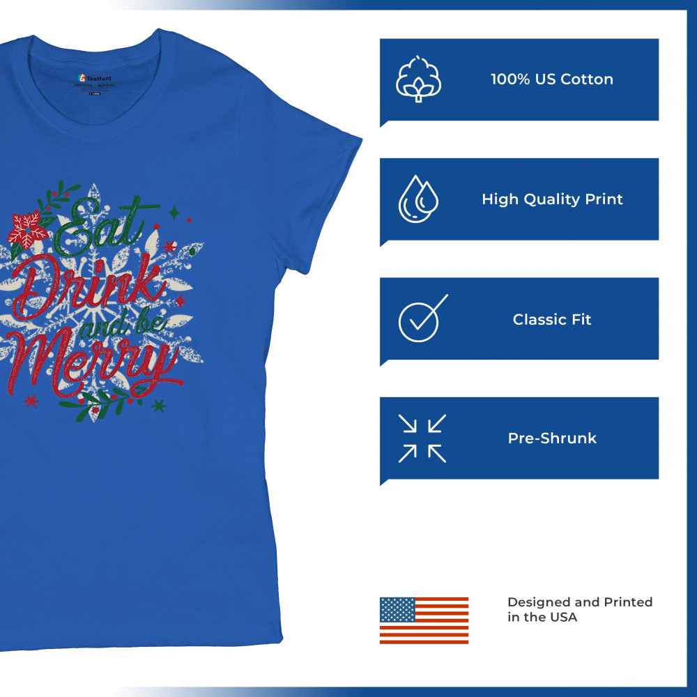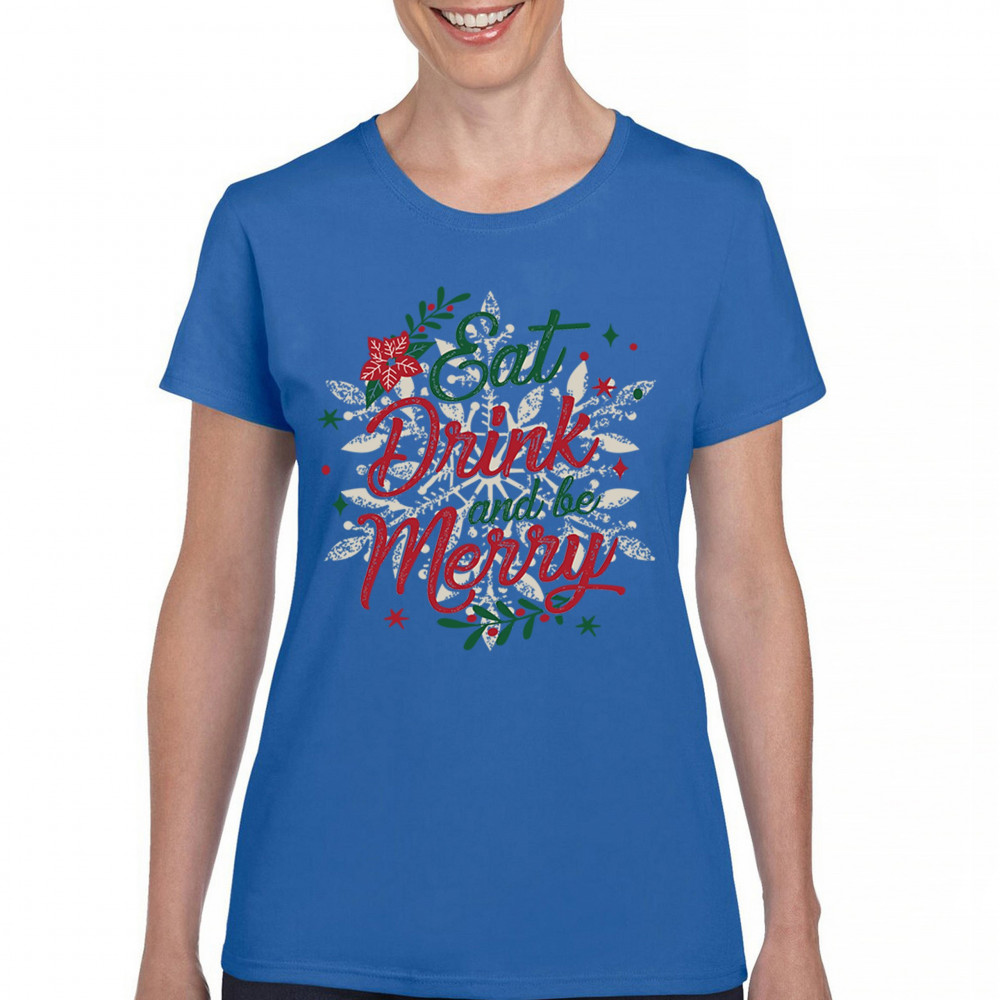 Bring the joy of the season with this "Eat, Drink, and Be Merry" design, crafted to make every holiday gathering a bit brighter. Ideal for cozy holiday mornings, family gatherings, Secret Santa gifts, or festive office parties, this piece captures the spirit of Christmas. Perfect for matching group sets or as a thoughtful holiday present, it’s designed in classic Christmas colors to complement the festive atmosphere. Let this design bring warmth and joy to your celebrations!