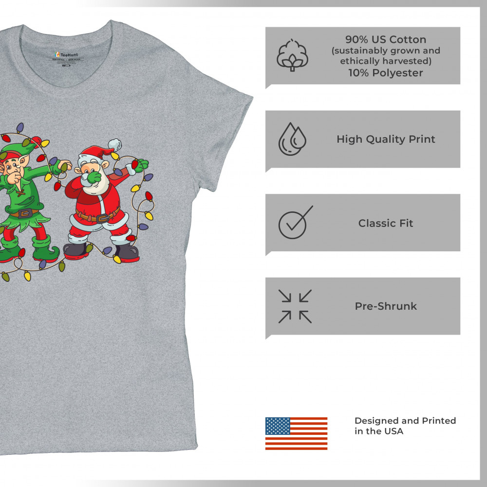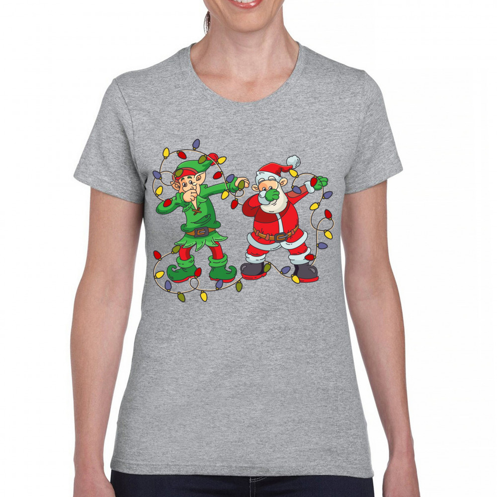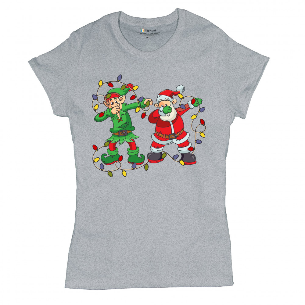 ELF AND SANTA CLAUS DAB DANCING t-shirt merry and bright christmas women's tee gray