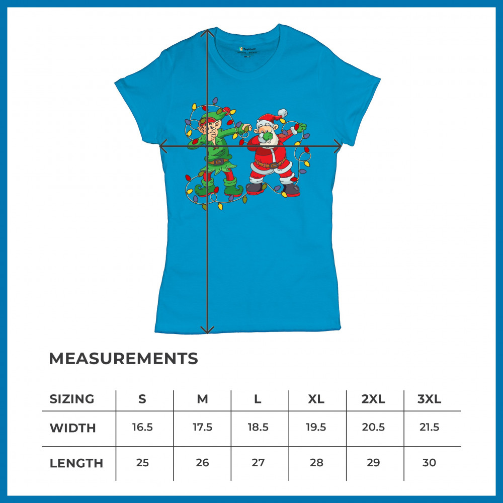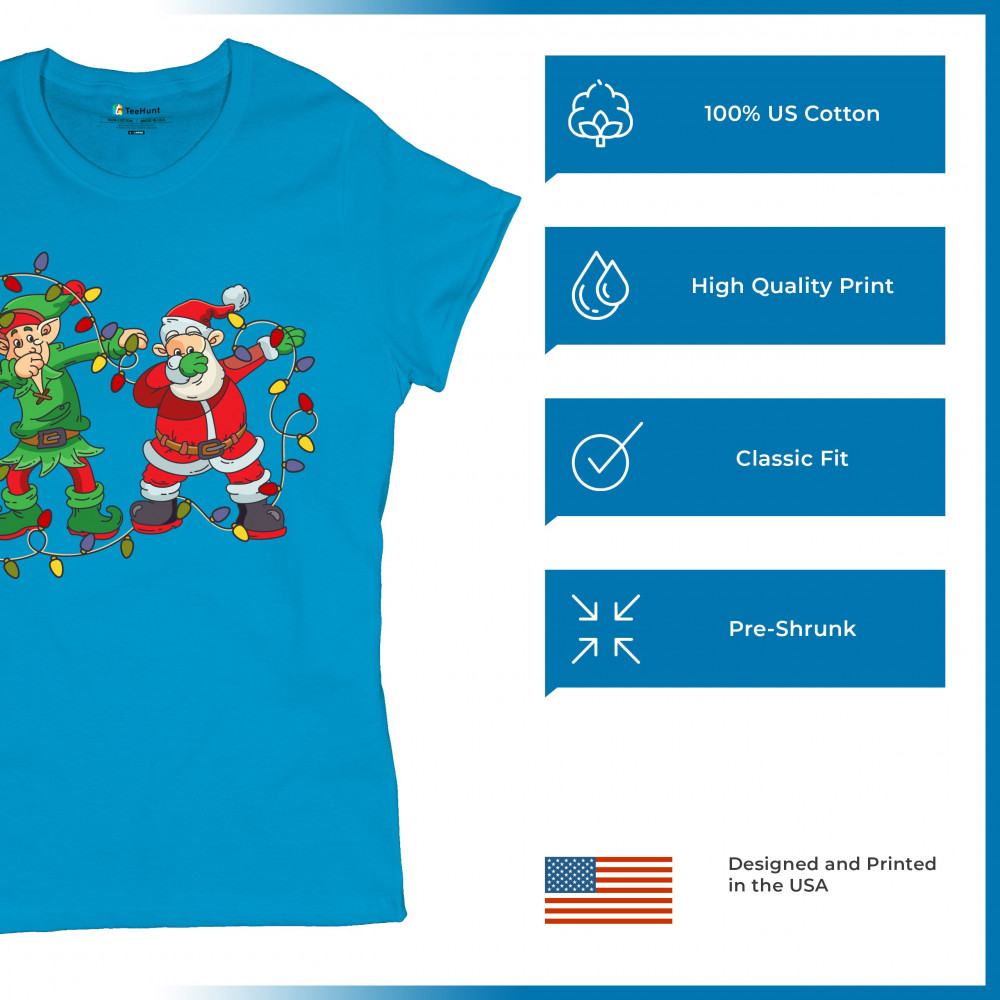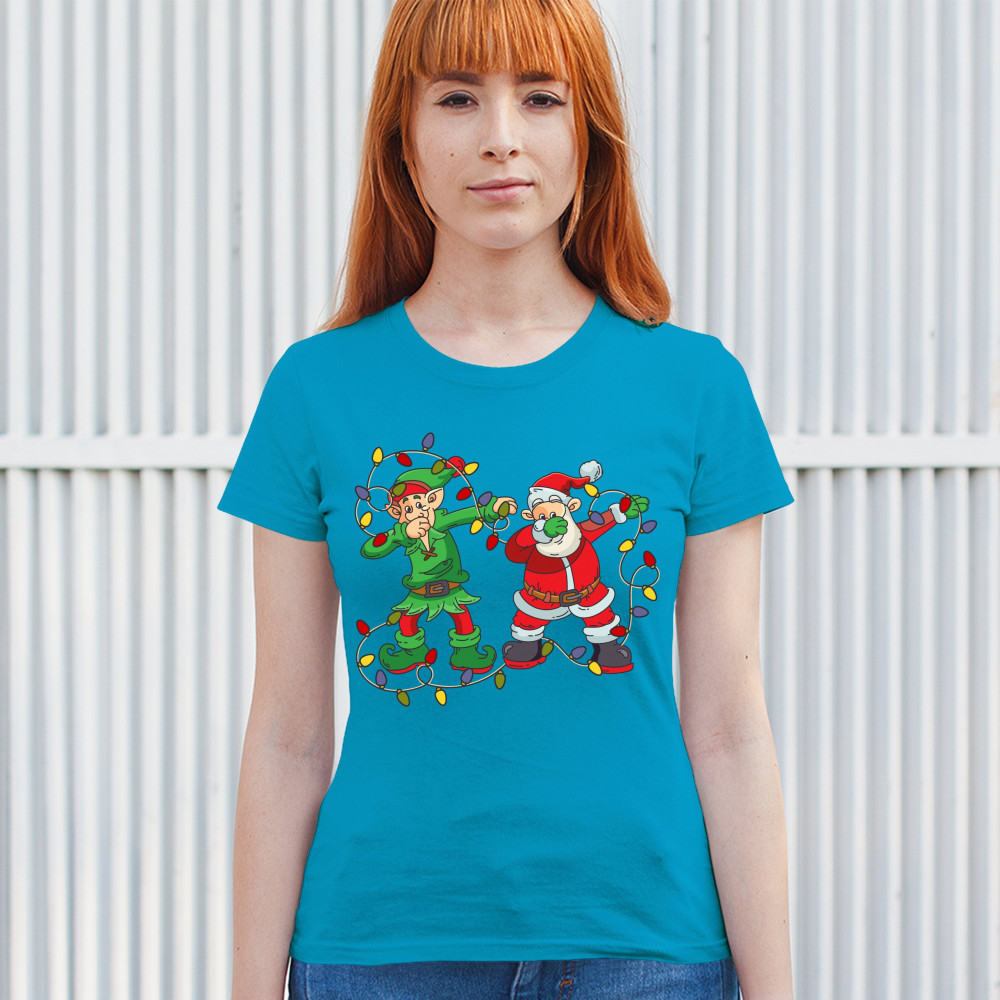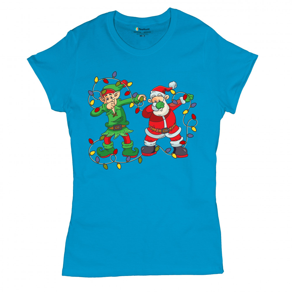 ELF AND SANTA CLAUS DAB DANCING t-shirt merry and bright christmas women's tee light blue