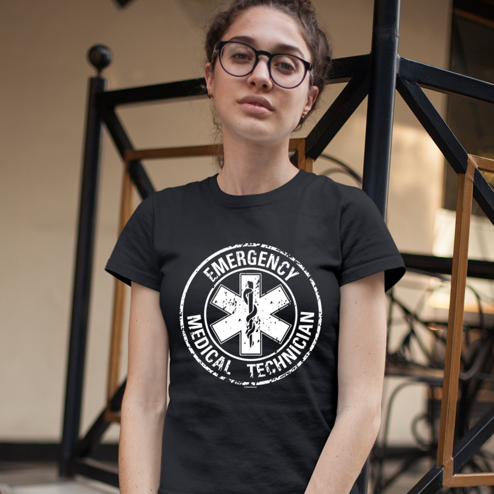 EMERGENCY MEDICAL TECHNICIAN t-shirt emt distressed star of life women's tee black