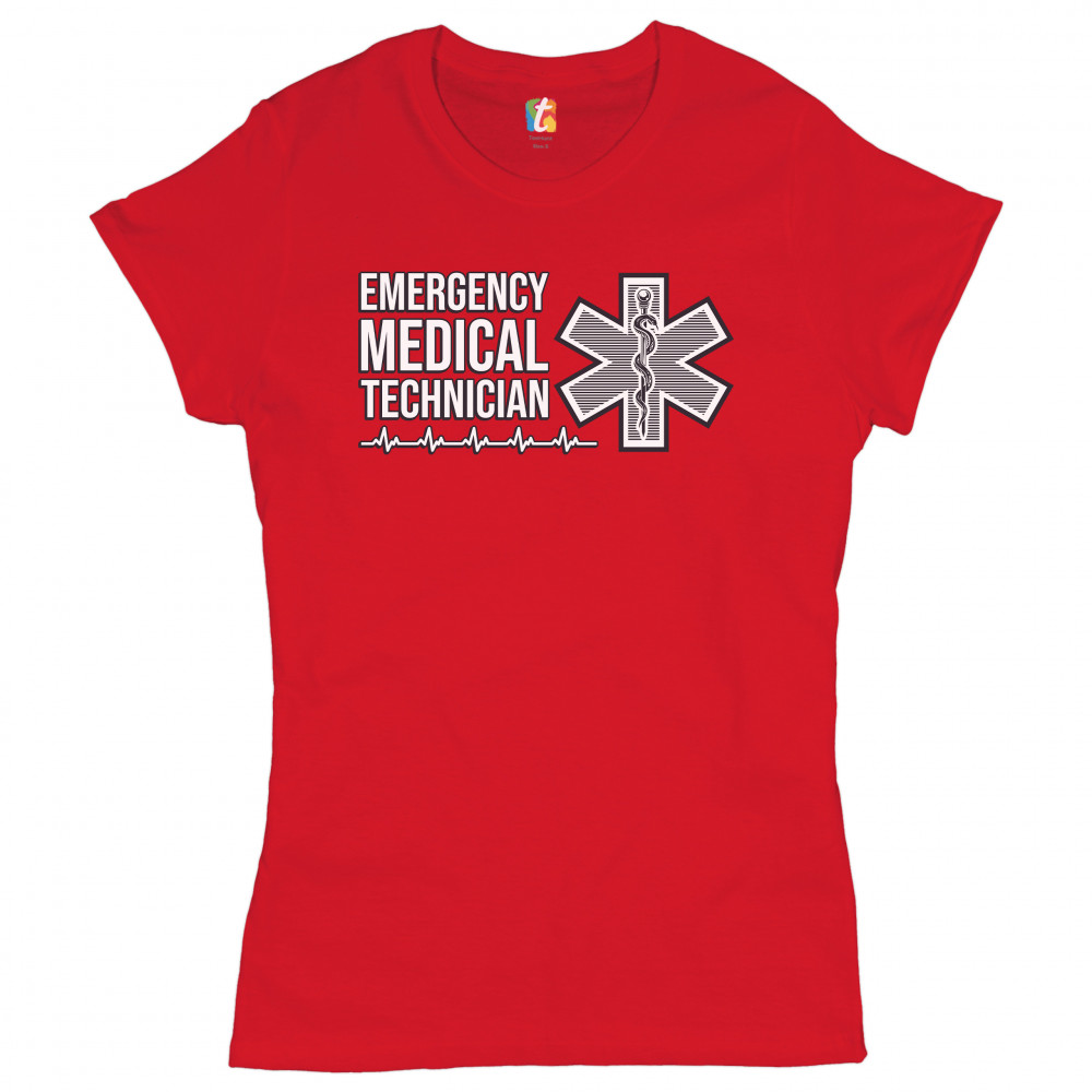 EMERGENCY MEDICAL TECHNICIAN t-shrit emt ems first responder women's tee red