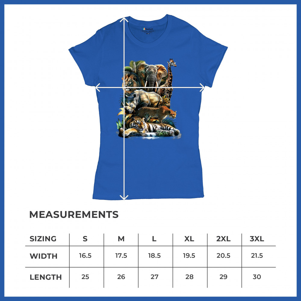 Wildlife design with lion, tiger, giraffe, rhino, cheetah, and elephant. Perfect for animal lovers and safari fans who embrace nature’s fierce spirit.