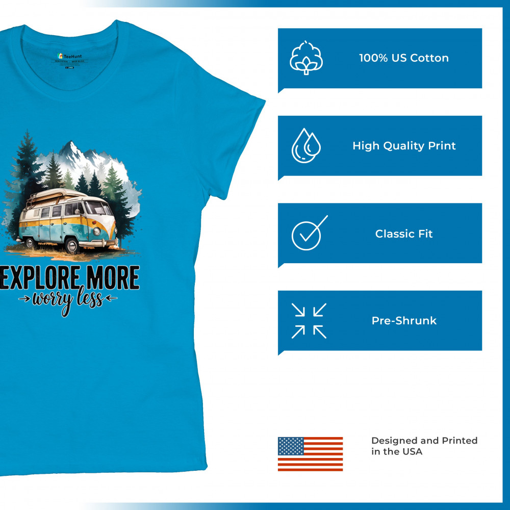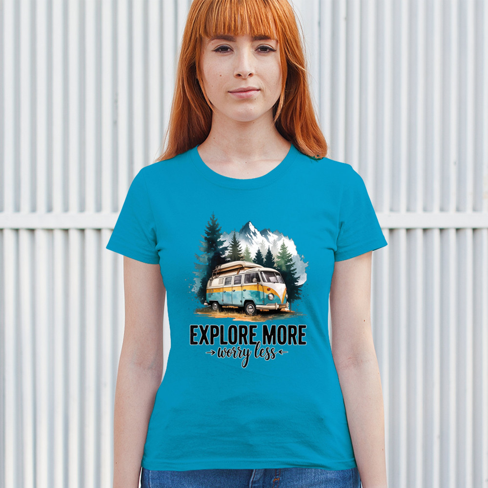 Explore More Worry Less is made for the outdoor soul—celebrating trail lovers, weekend hikers, and national park explorers. Whether you're into off-grid adventures or glamping with family, this design fits your lifestyle. Embrace nature, campfire moments, and wilderness vibes with a look built for your next escape.