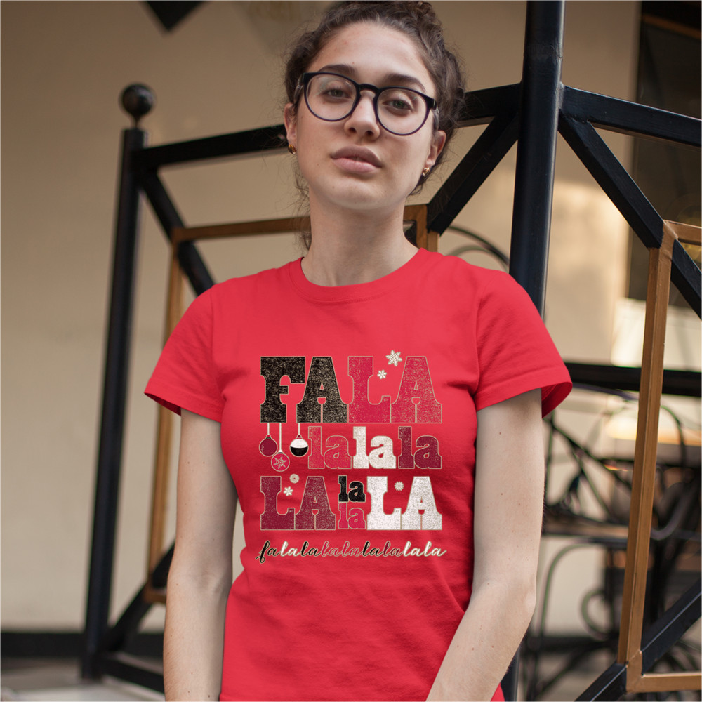 FA LA LA MERRY CHRISTMAS t-shrit deck the halls christmas party women's tee red