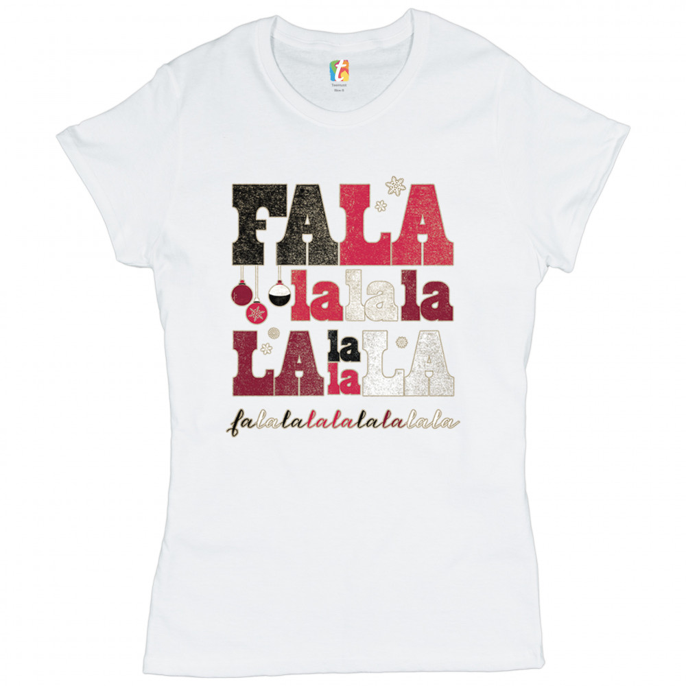 FA LA LA MERRY CHRISTMAS t-shrit deck the halls christmas party women's tee white