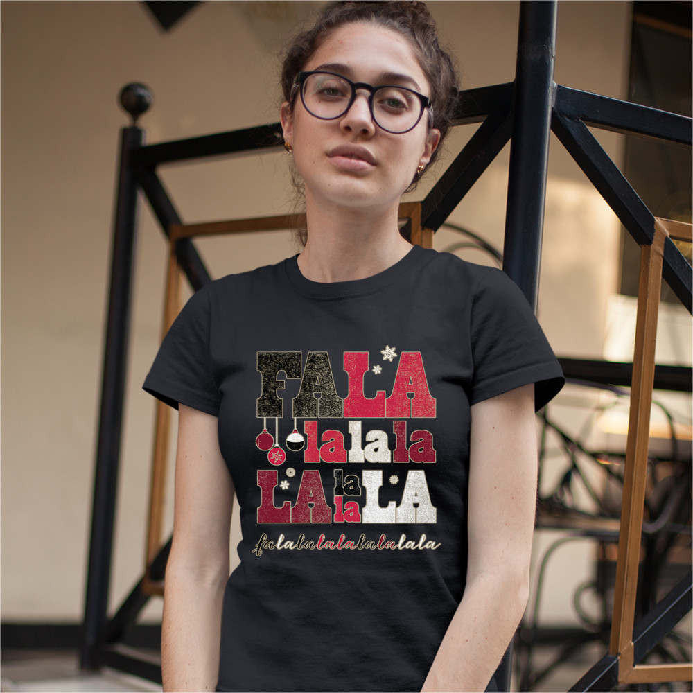 FA LA LA MERRY CHRISTMAS t-shrit deck the halls christmas party women's tee black