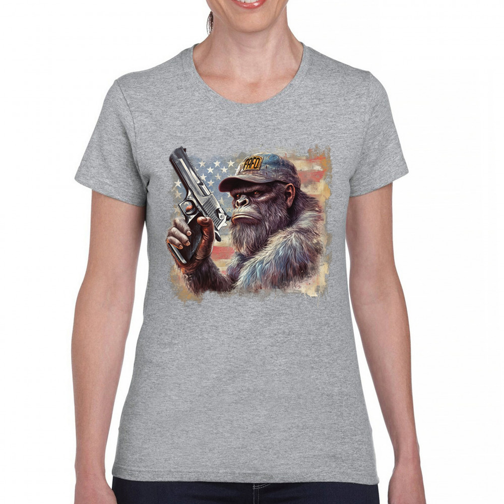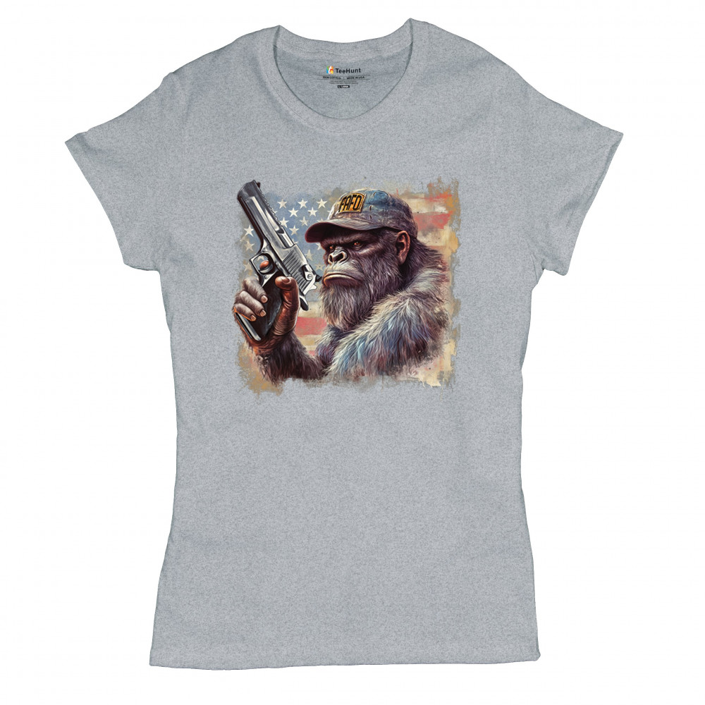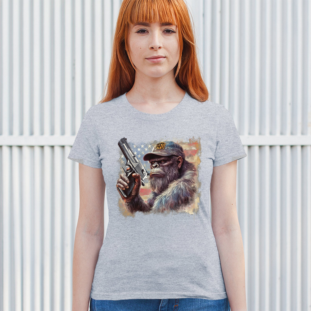 Show your Second Amendment pride with this bold patriotic gorilla design featuring the American flag and a firearm. Perfect for gun rights supporters, veterans, and freedom lovers.