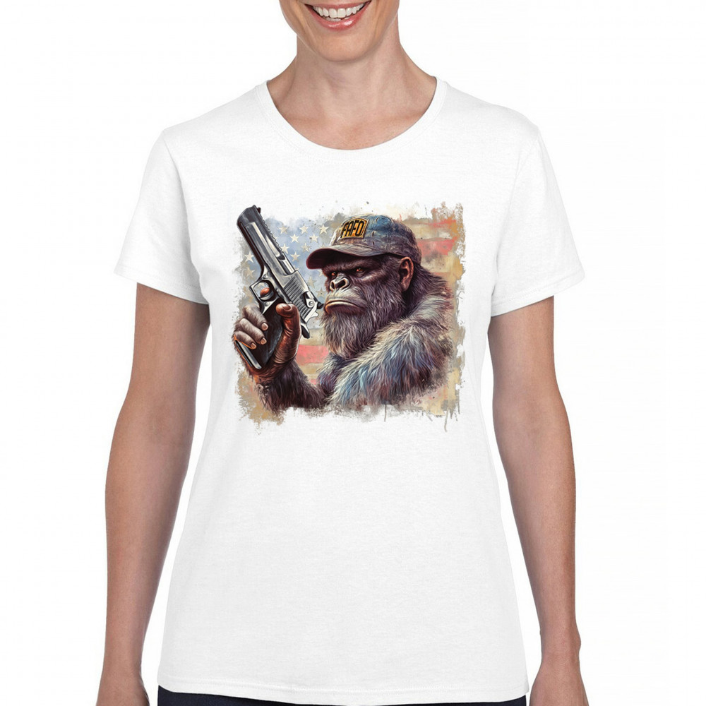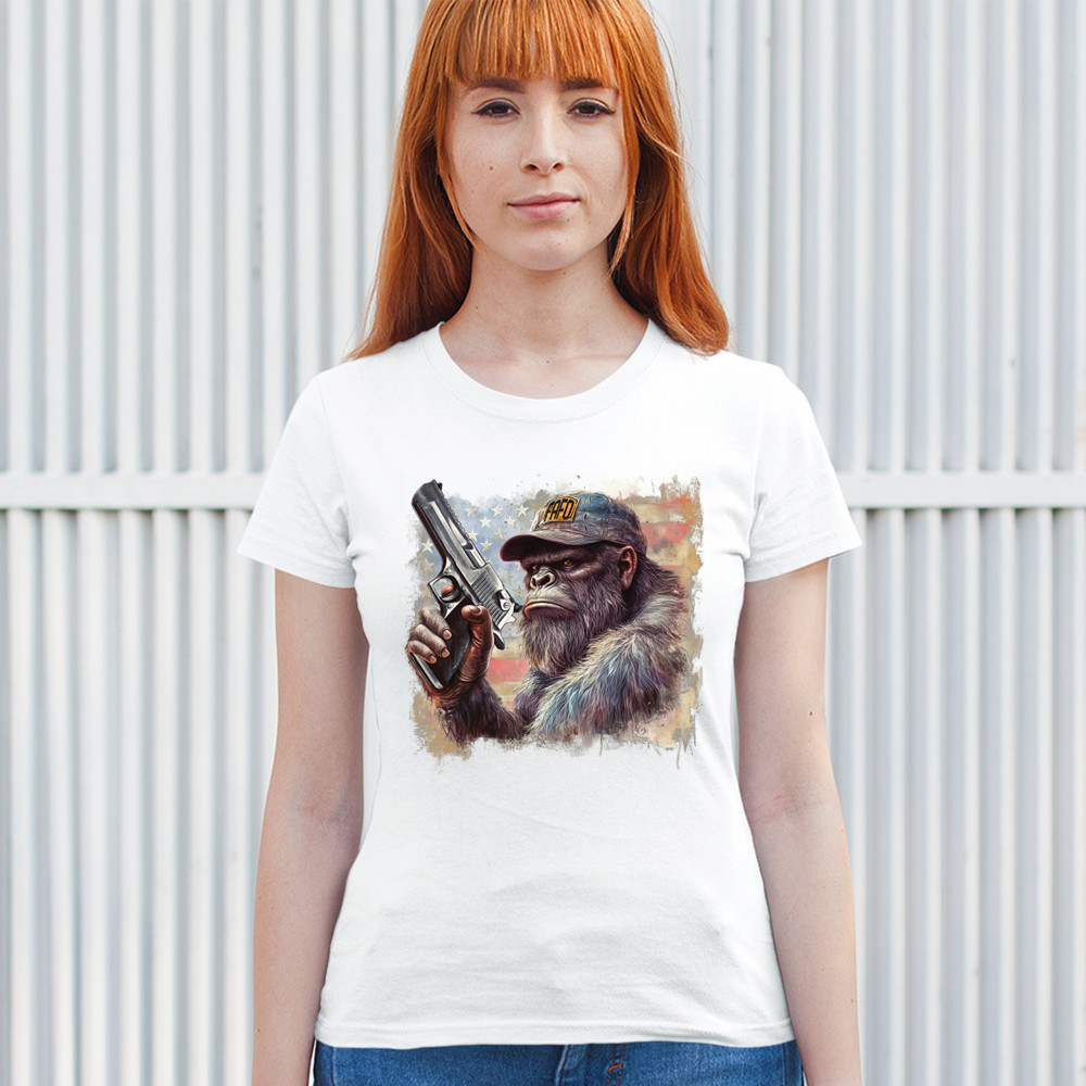 Show your Second Amendment pride with this bold patriotic gorilla design featuring the American flag and a firearm. Perfect for gun rights supporters, veterans, and freedom lovers.
