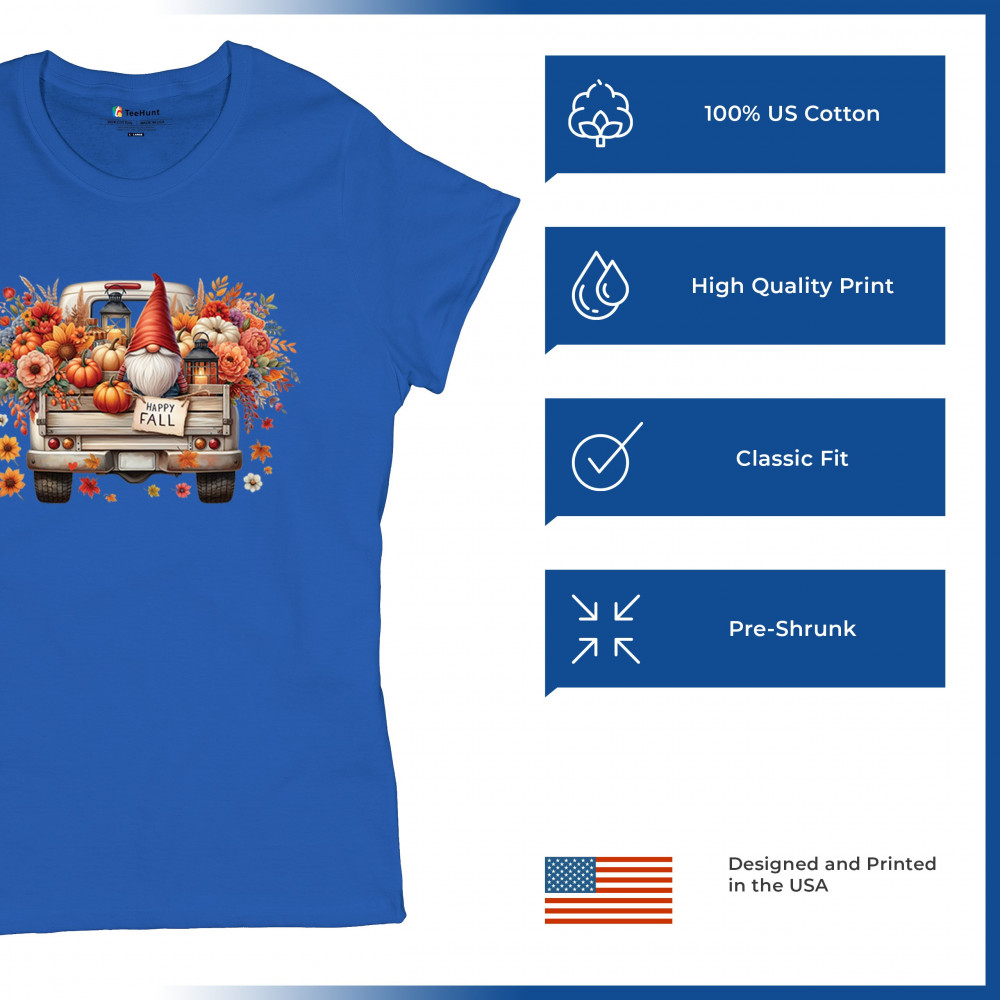 Bring fall charm into your wardrobe with this rustic gnome truck design. Overflowing with pumpkins, wildflowers, and a glowing lantern, it’s perfect for Thanksgiving, farmhouse gatherings, harvest festivals, and celebrating the floral autumn season in cozy style.