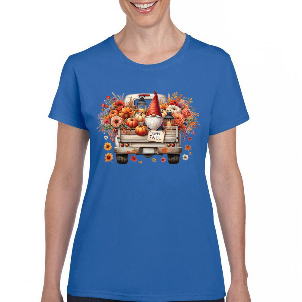 Rustic gnome truck design with pumpkins, wildflowers, and lantern glow. Perfect for Thanksgiving Day, farmhouse harvest, and cozy autumn style.
