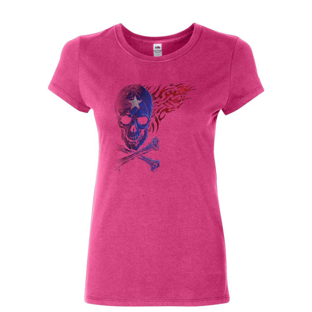 SKULL FACE WITH CROSSBONES fantacycle skull crossbones women's t-shirt american pride tribal flame shirt hot pink