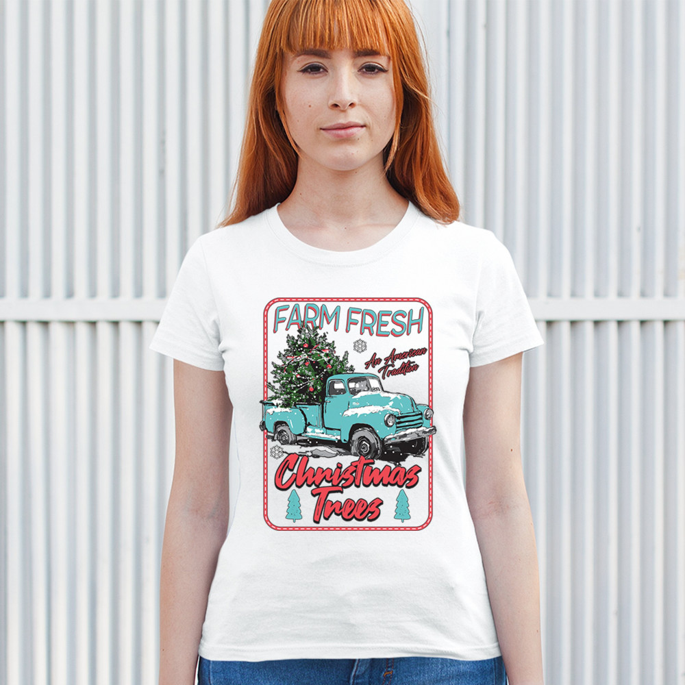 Celebrate the season with "Farm Fresh Christmas Trees" – a nostalgic design perfect for festive decor, matching outfits, and holiday gatherings.