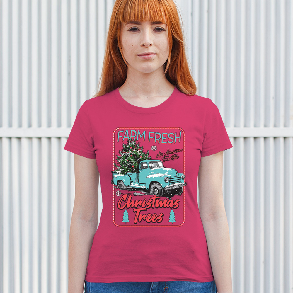 Celebrate the season with "Farm Fresh Christmas Trees" – a nostalgic design perfect for festive decor, matching outfits, and holiday gatherings.