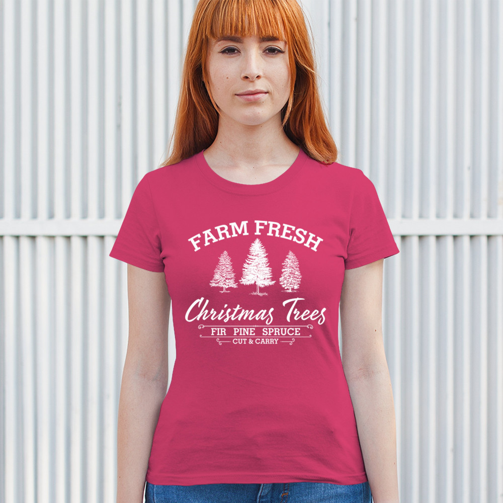 Celebrate the season with the "Farm Fresh Christmas Trees" design, perfect for holiday gatherings, Secret Santa gifts, and cozy holiday mornings.