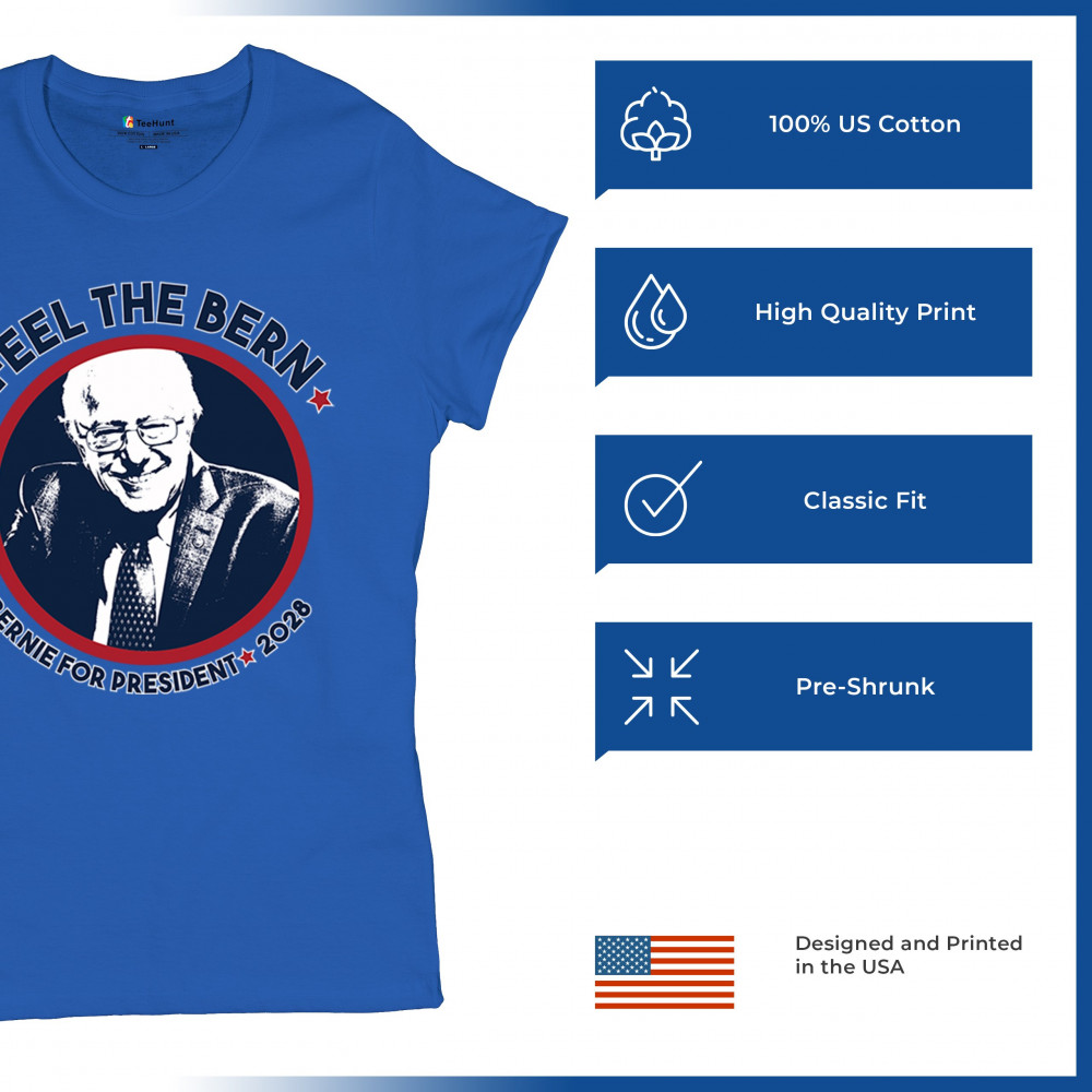 Show your commitment to democratic reform with this "Feel the Bern – Bernie for President 2028" design. Featuring Bernie Sanders’ portrait and patriotic colors, it’s perfect for political events, marches, or campaign volunteering. Wear it with pride at rallies, protests, or voter registration drives to back the progressive movement.