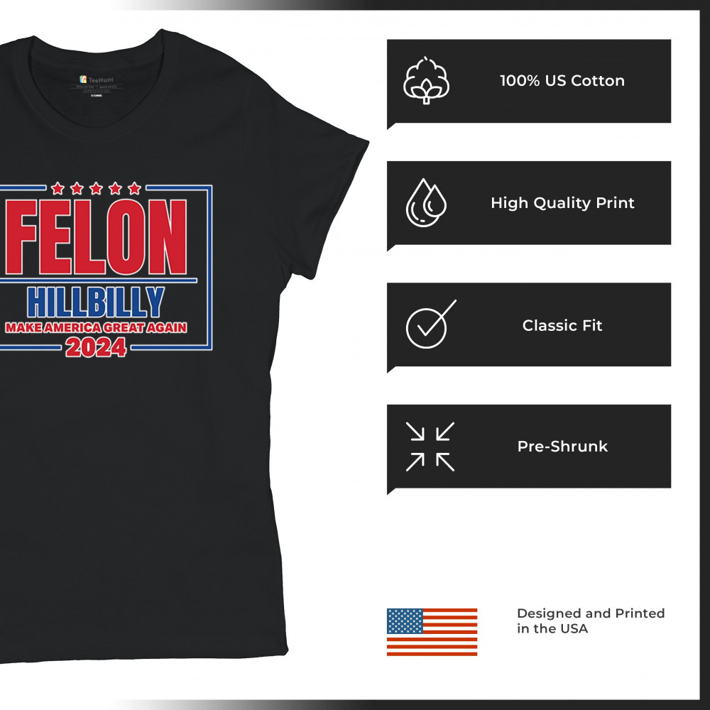he "Felon Hillbilly 2024" design is perfect for Trump supporters, embodying conservative values and American pride.