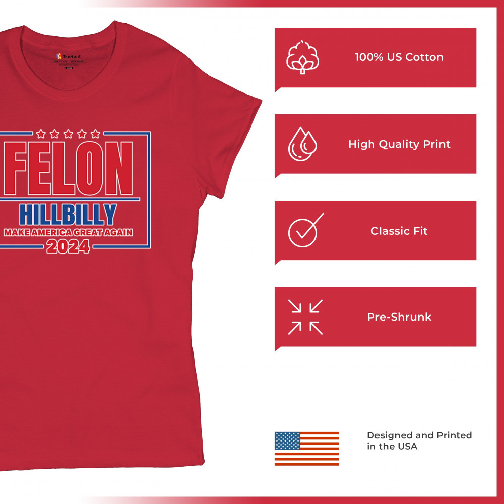 he "Felon Hillbilly 2024" design is perfect for Trump supporters, embodying conservative values and American pride.